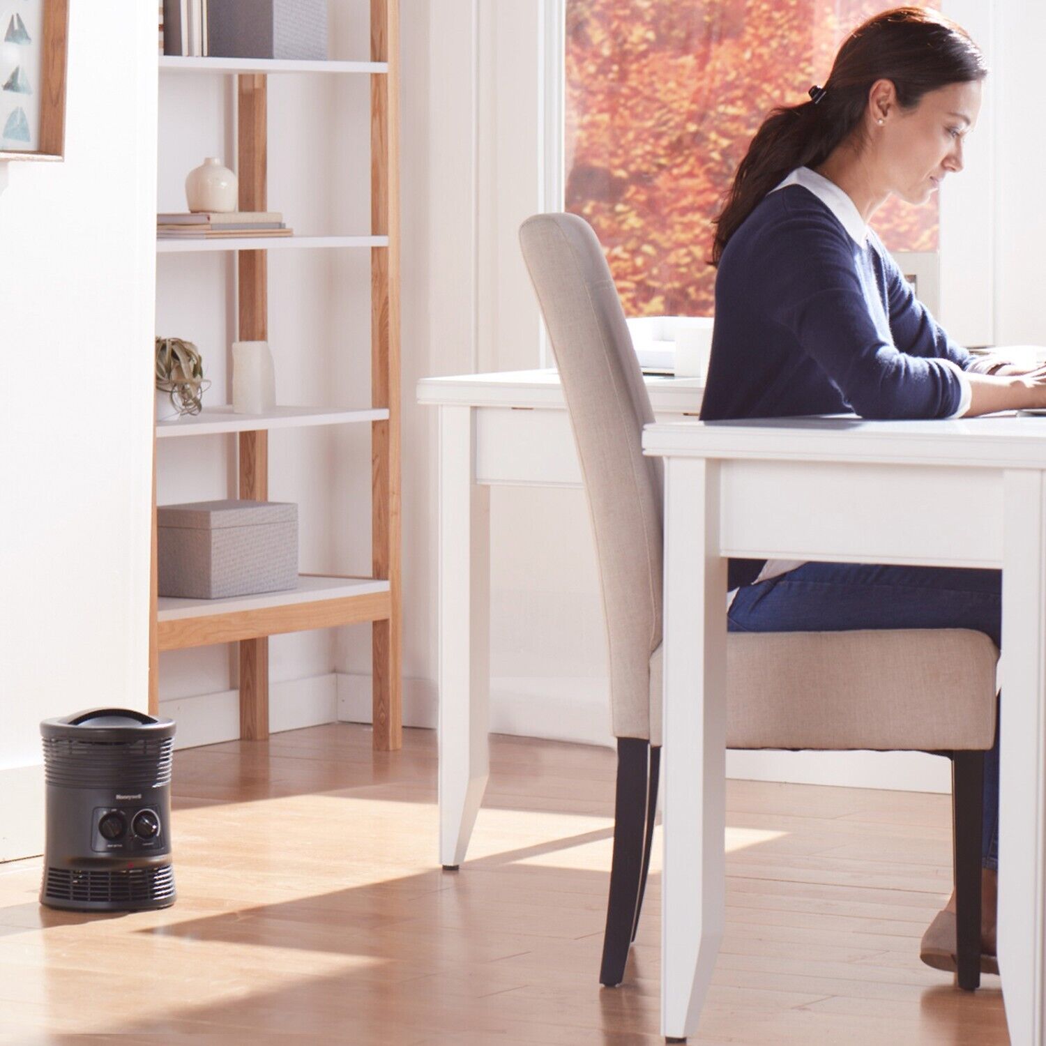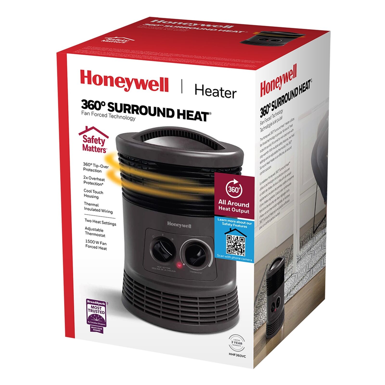 Take control of your comfort with the Honeywell 360 Degree Surround Heat. It’s ideal for small to mid-sized rooms and a great choice for additional comfort in your home or office. This space heater features fan forced technology an adjustable thermostat as well as 2 heat settings and all-around heat output so you’re always cozy. When it comes to your family safety matters. The room heater also offers added protection with multiple safety options including a 360-degree tip over switch 2x overheat protection an auto-off time option and an easy grab cool touch carry handle. With a space heater you can even save money and energy! By turning down your whole house thermostat a few degrees and heating just the room you are in a Honeywell small heater can help you save money while providing soothing warmth.