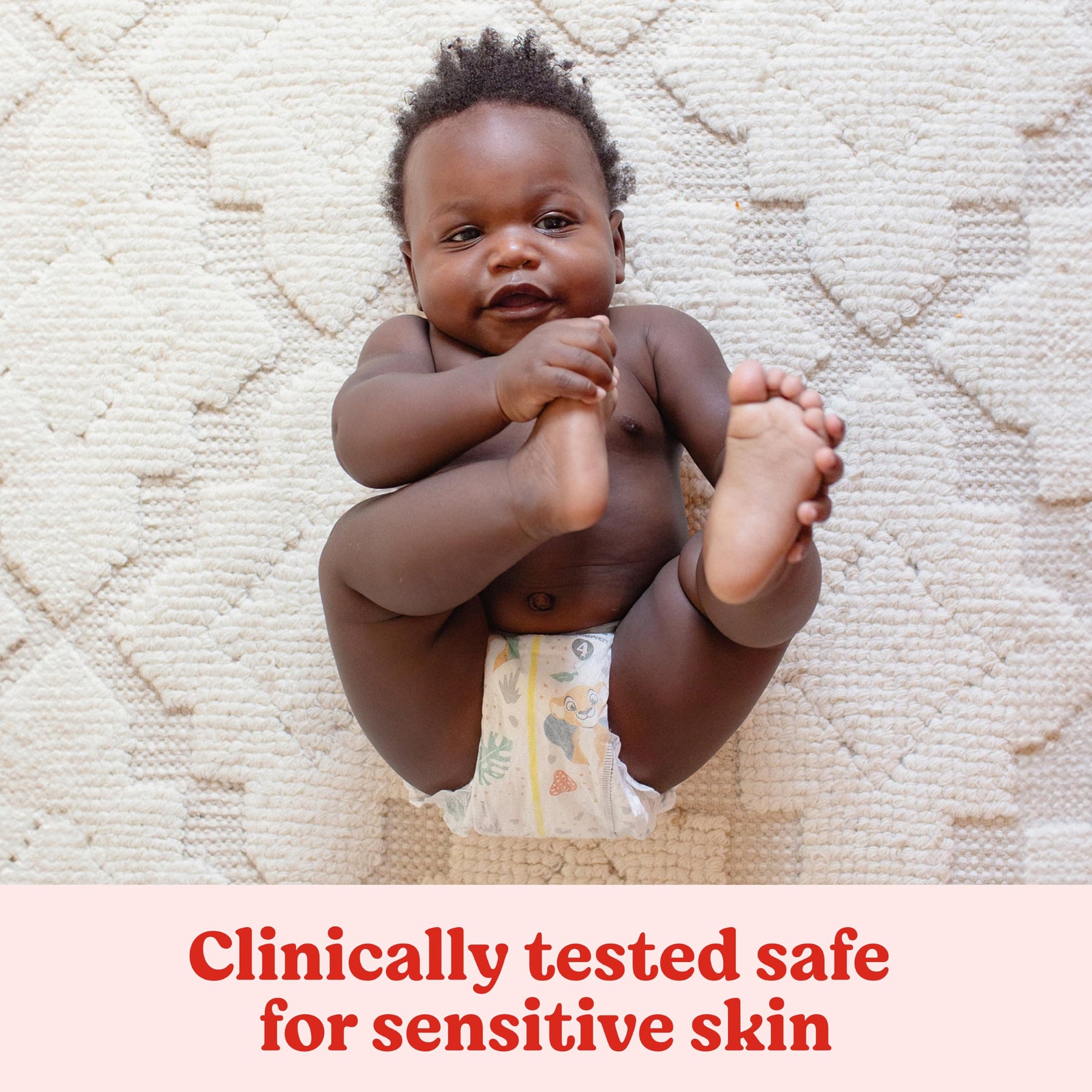 • Fast-Absorbing Dry Touch Liner helps the disposable diaper lock away 99% of wetness to help keep skin dry