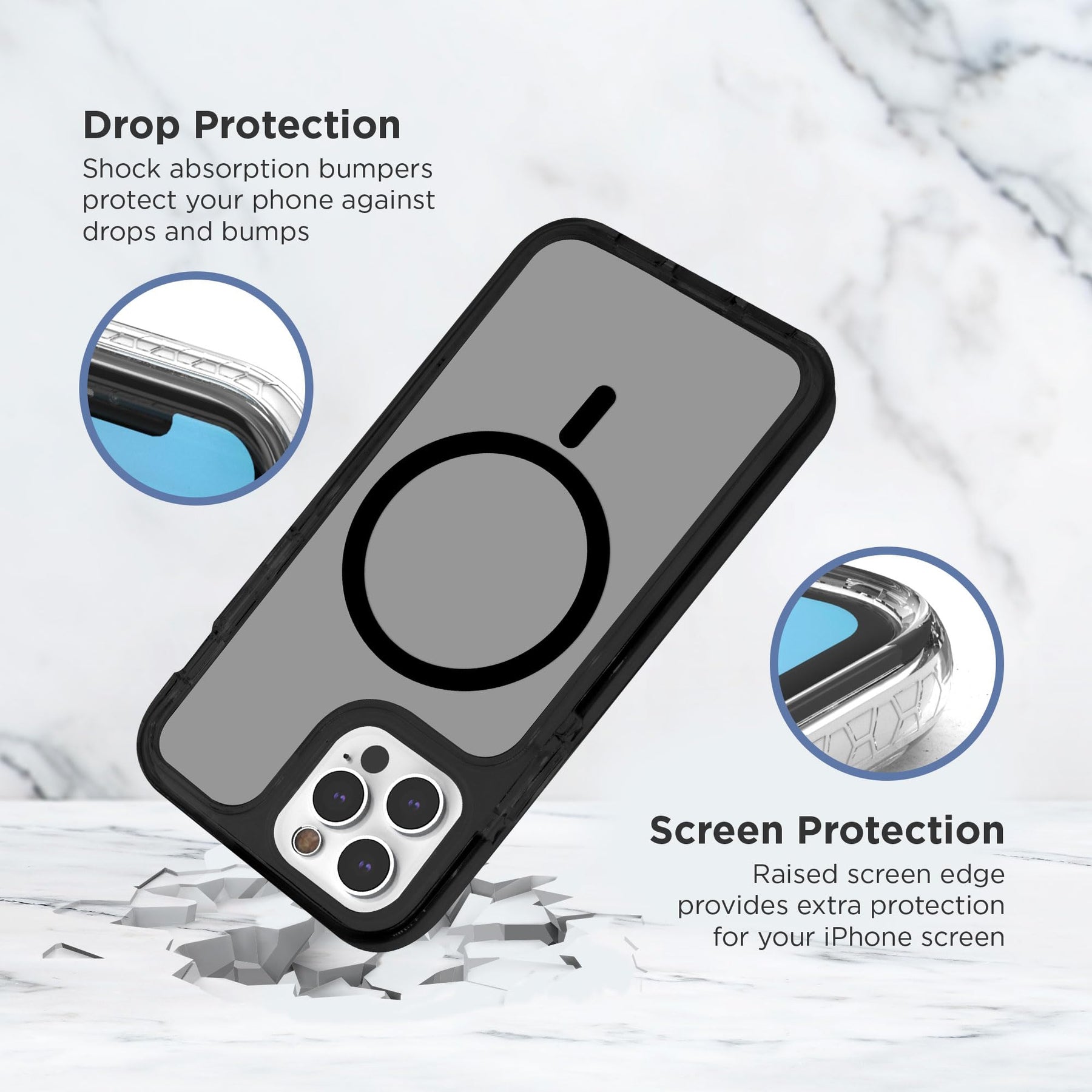 • Drop-Proof Design: Live life worry-free! Shock-absorbing bumpers and a raised screen edge provide heavy duty protection against drops, bumps, and scratches, keeping your iPhone 12 Pro pristine.