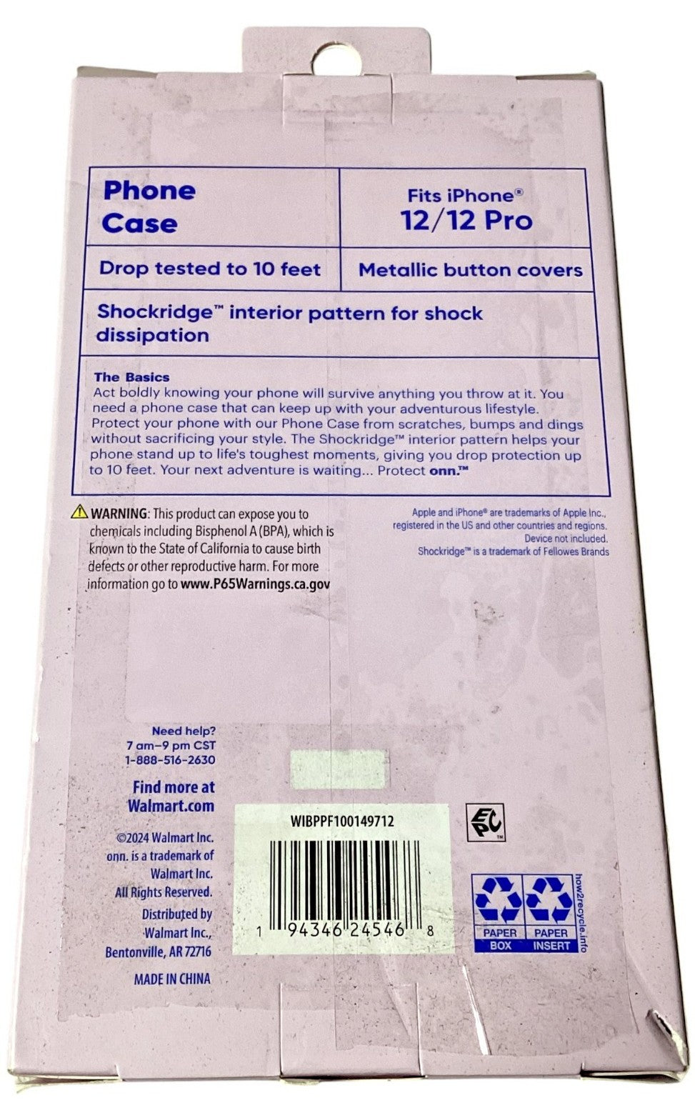 Onn: Protect Phone Case Floral Pattern, for iPhone 12 & iPhone 12 Pro Models Retail $12.98