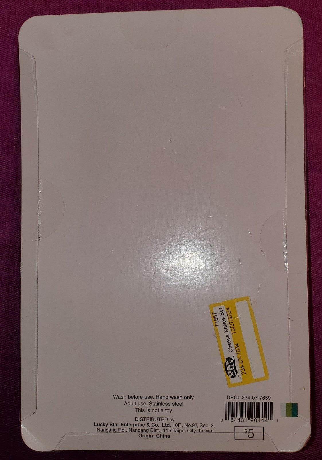 The Stainless Steel Cheese Knife Set includes 3 pieces with green tone handles. The modern set is suitable for all occasions, featuring solid handle patterns and made from stainless steel. Ideal for serving cheese and other foods, this set is a stylish addition to any kitchen or dining area. Made by Lucky Star in China.