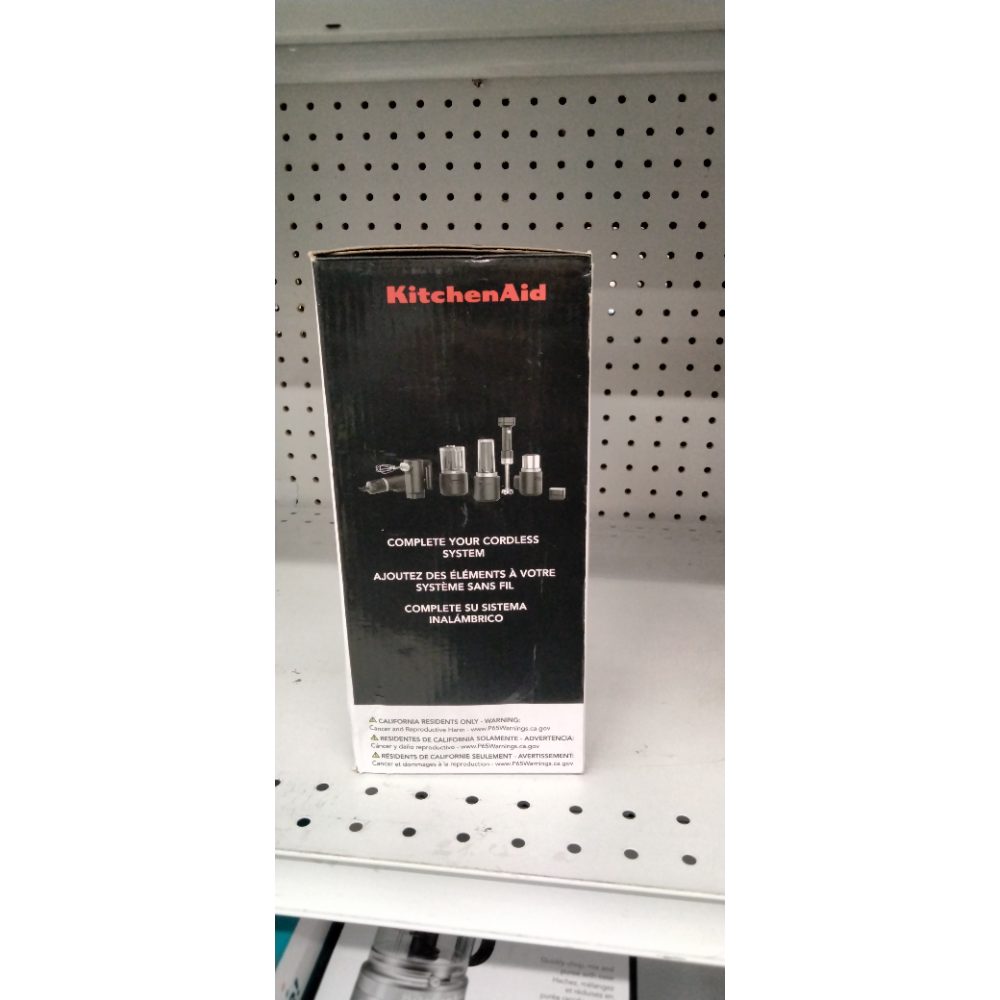 Move your appliance around the kitchen with ease, without limitations of cords or nearby outlets 12v MAX battery (sold sep, model KRB12) for up to 30 min. of continuous runtime - max initial battery voltage (measured without a workload) is 12 volts; nominal voltage is 10.8; actual run time varies based on recipe and/or attachments used; battery life impacted by factors such as battery age & use Removable 7" blending arm with a 4-point stainless steel blade design efficiently blends ingredients for smoothies, milk shakes, soups, and so much more Variable speed trigger switch gives you greater flexibility and control over the recipe U.S. patented removable pan guard to help protect your cookware Model KHBRV00 includes (1) Variable speed cordless hand blender, (1) 3 cup BPA-Free jar with lid, (1) Removable 7" blending arm with stainless steel blade, (1) U.S. patented removable pan guard