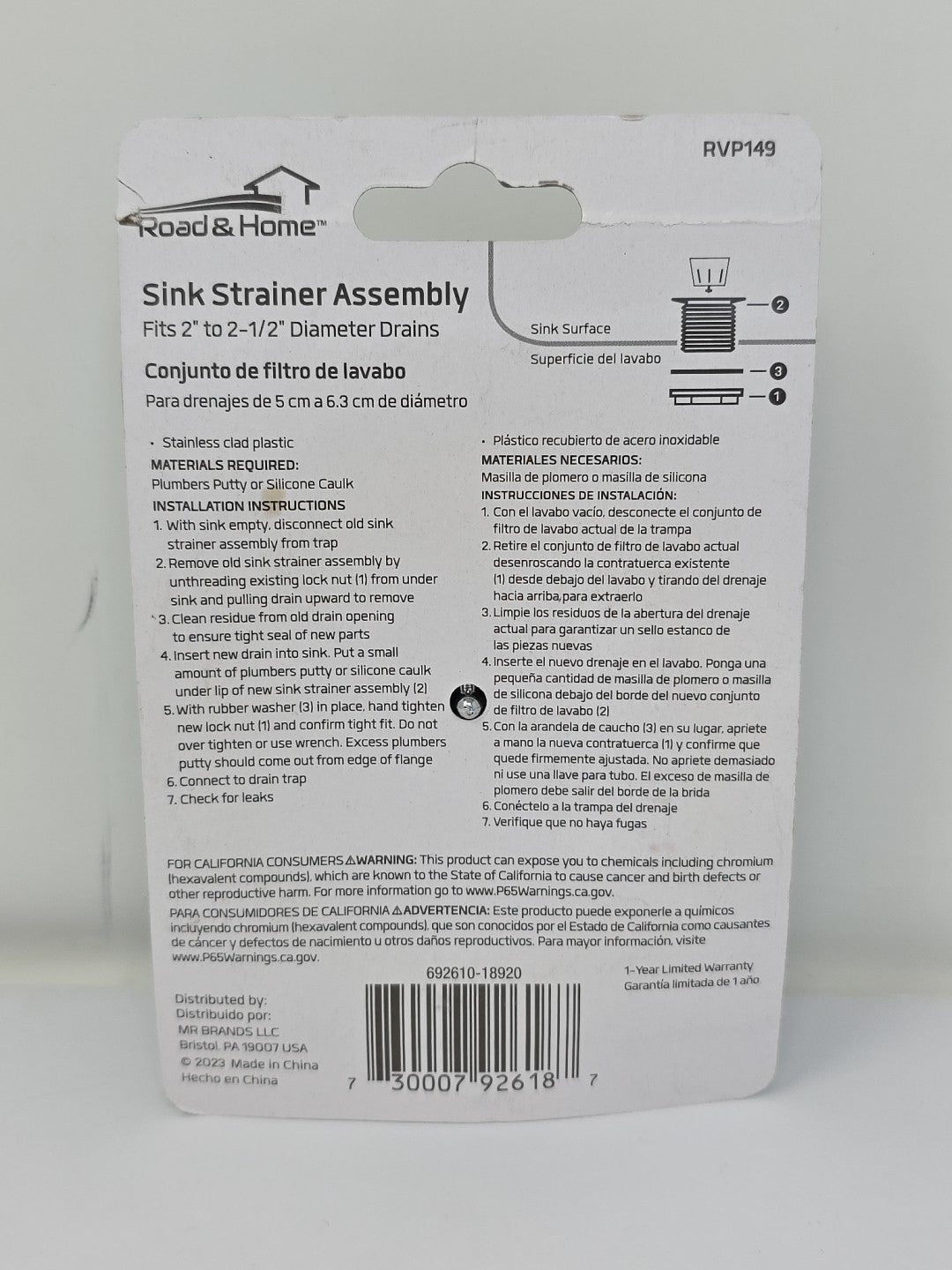 Sink Strainer Assembly Fits 2" to 2 1/2" Diameter Drains NEW RV's Road & Home