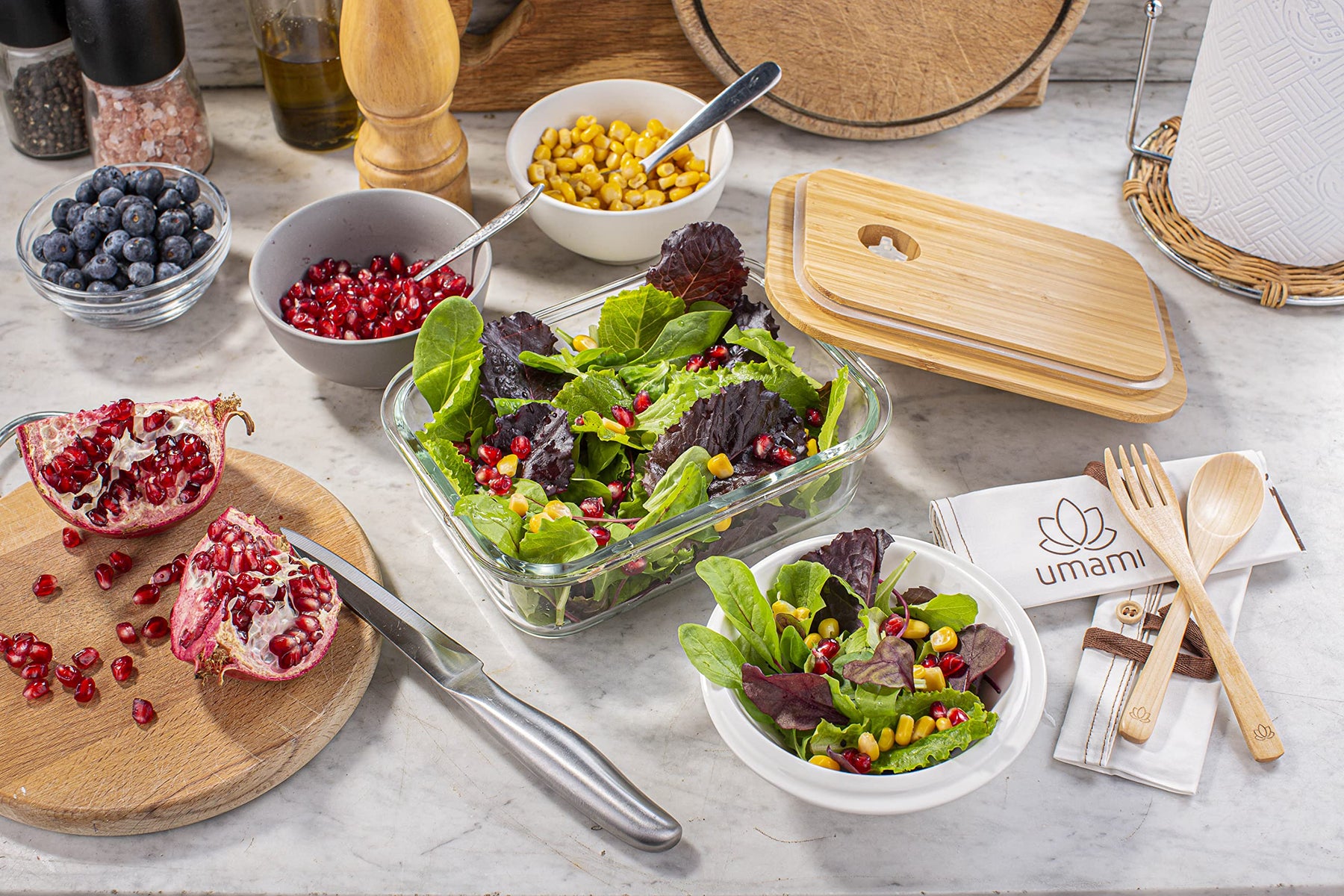 HEALTHY PORTIONS - Create the best fresh and nutritious portions with Umami’s glass meal prep containers set that will leave you perfectly satisfied. EASY TO CLEAN - Wash by hand or just put the glass food storage containers in the dishwasher. They look like new even after pasta sauce or chili! No stains or smells! 100% LEAKPROOF - Take it anywhere: upside down, or shaken around, the silicone seal ensures no food or liquid ever spills from your glass containers. PLASTIC-FREE - The Umami meal prep glass containers with their lid made out of natural bamboo are plastic-free, BPA-free, and sustainable, helping you reduce plastic waste. MULTIPLE USES - The most versatile meal prep containers. Reusable and recyclable as well! Call them what you like: lunch containers for adults, large glass food storage containers, or portion control containers, they are the solution for you! FRIDGE, MICROWAVE & OVEN SAFE - Store leftovers in the fridge, remove the lid and pop them in the oven or reheat your lunch on the go in the microwave. EASY TO OPEN & CLOSE - Close the silicone valve to keep the lunch container airtight or pull it open to help you open your lunch box. STYLISH & PRACTICAL - Easily stackable and neatly nesting. The Umami food prep containers are great for leftovers, food storage, meal prep, and portion control. NO CHIPS OR CRACKS - Made to last! The bento glass containers are made with high-quality borosilicate glass that will withstand years of daily use!