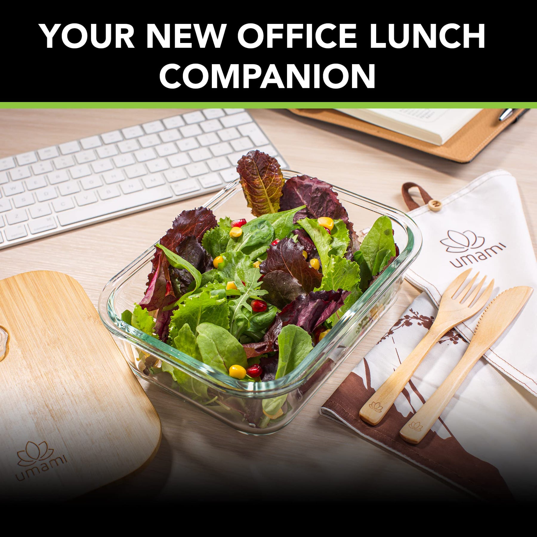 Umami Glass & Bamboo Meal Prep Container, Food Storage Container, Leakproof and Plastic Free, Stylish Microwave/Dishwasher Safe Small Bento Lunch Box For Men/Women (Glass 22 oz)