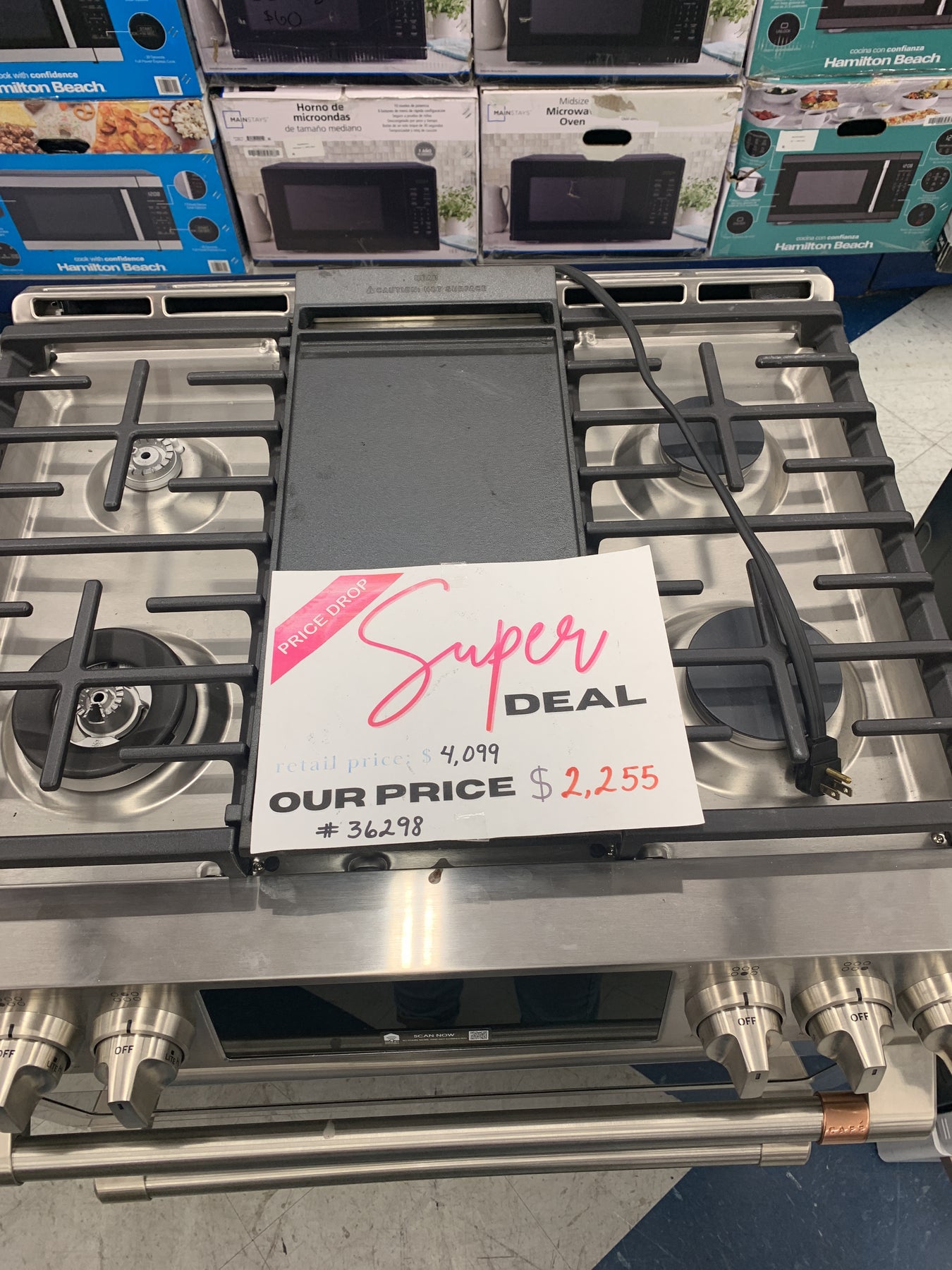 This Cafe Dual Oven Range is designed to elevate your cooking experience with its professional-grade features and sleek design. The stainless steel finish adds a touch of elegance to any kitchen.
