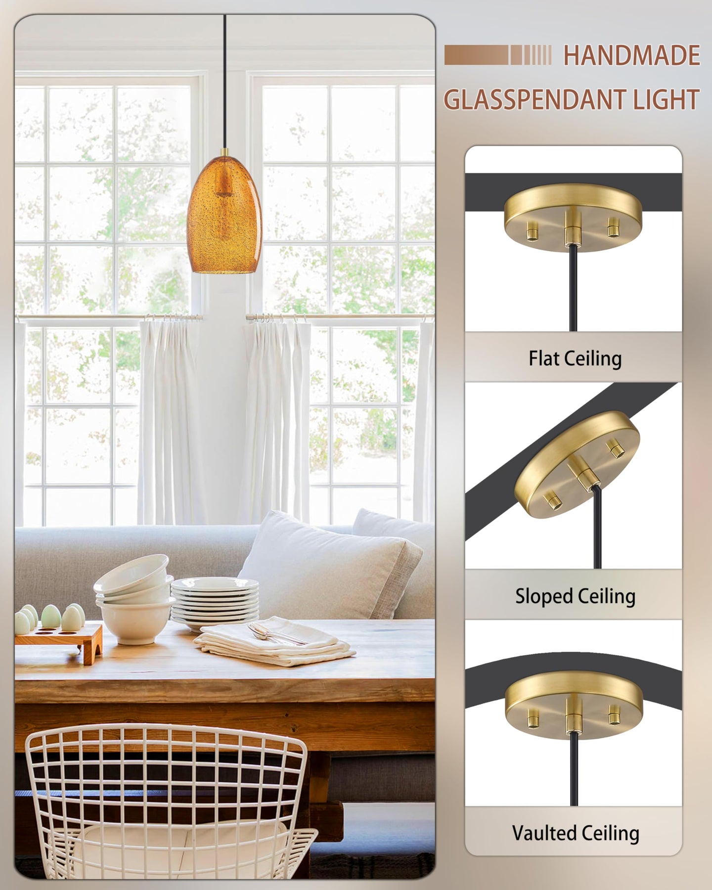 1.Why choose Dolaimy House pendant light? Focused on providing unique lighting designs for residences . A professional production for interior Spaces: crystal pendant light, glass pendant light, table lamps, wall sconce, floor lamps, chandeliers, elegant lamps carefully selected for you, perfectly integrated into the most modern style. 2.Base diameter 4.75 inches,Produnct size:5.325.3251.5 inches.Bulbs are not included, watt can refer to the left picture recommended content after purchase.It is also fully dimmable when using a dimmable bulb and dimmer switch. You can choose different styles of bulbs and color temperatures to create different atmospheres. [Note: Bulb and dimmer switch not included. ] 3.Adjustable Design: This pendant light uses Cord (adjustable height 51.5 inches), and there are adjustment tools in the box for easy adjustment, allowing customization to suit your ceiling height.Can be installed on any ceiling. 4.Safe and easy to install - The mounting base is fully compatible with US junction boxes.The installation is ideal for a variety of areas such as kitchen islands, dining rooms, hallways, and more. Pendant light kitchen island is perfect for lighting and home decor. 5.Hand-painted glass color: This mini unique art glass chandelier is hand-blown, and due to its hand-crafted nature, each piece of blown glass will be painted in a different shade depending on its thickness. 6.?After-Sales Support?We are a factory out and will provide customer service. 100% refund/replacement for any quality issues. If you have any questions about the chandelier, please feel free to contact us.