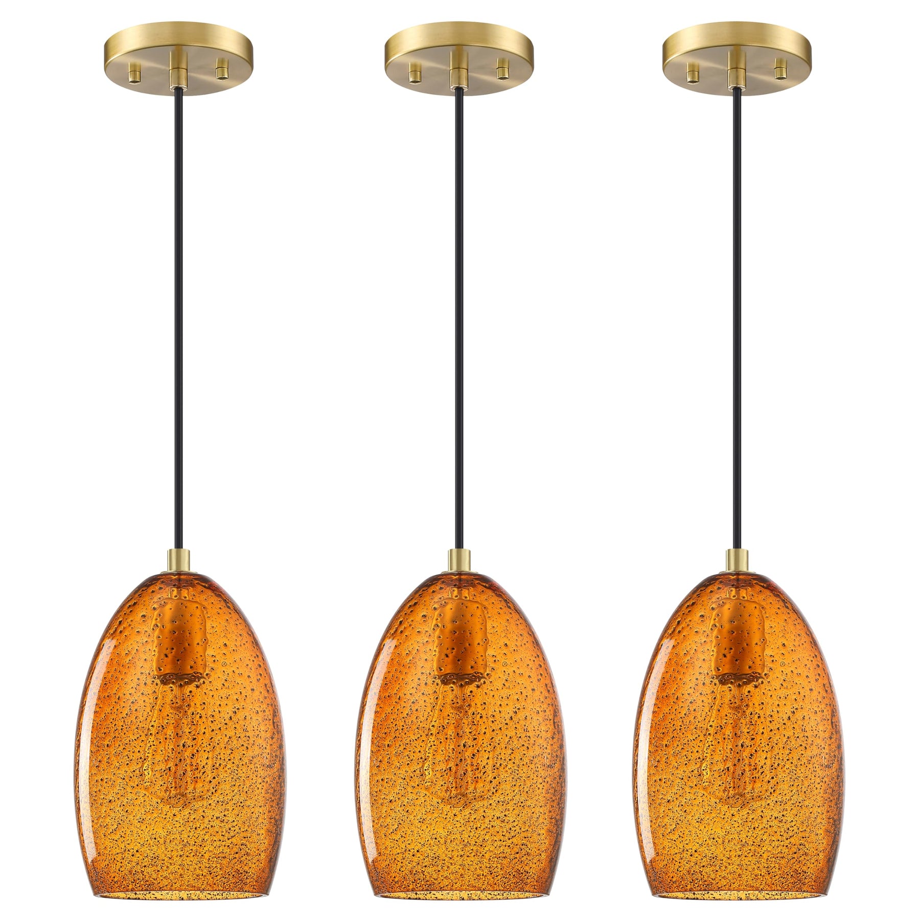 Dolaimy House 3 Pack 1 Light Mini Hanging Indoor Kitchen Island Pendant Light,5.3" Ancient Seeded Amber Glass Pendant Ceiling Light Fixtures Brushed Bronze Finish Modern Farmhouse Dinning Over Sink