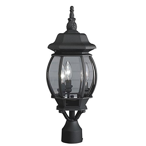 Light up your home's exterior Black finish outdoor post lantern delivers an air of elegance 8.43-in W x 21.34-in H x 8.43-in D Wet location capable Weather-resistant die-cast aluminum operates in rain or shine