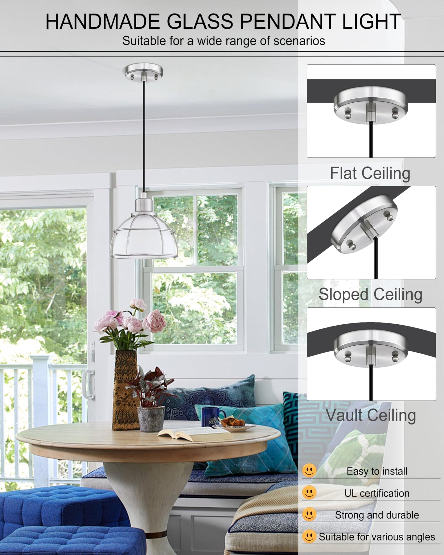 1.Why choose Doraimi Lighting pendant light? Focused on providing unique lighting designs for residences for 17 years. A professional production for interior Spaces: crystal pendant light, glass pendant light, table lamps, wall sconce, floor lamps, chandeliers, elegant lamps carefully selected for you, perfectly integrated into the most modern style. 2.Base diameter 4.75 inches,Product size:6.336.3348 inches.Bulbs are not included, watt can refer to the left picture recommended content after purchase.It is also fully dimmable when using a dimmable bulb and dimmer switch. You can choose different styles of bulbs and color temperatures to create different atmospheres. [Note: Bulb and dimmer switch not included. ] 3.Adjustable Design: This pendant light uses Cord (adjustable height 48 inches), and there are adjustment tools in the box for easy adjustment, allowing customization to suit your ceiling height.Can be installed on any ceiling. 4.Safe and easy to install - The mounting base is fully compatible with US junction boxes.The installation is ideal for a variety of areas such as kitchen islands, dining rooms, hallways, and more. Pendant light kitchen island is perfect for lighting and home decor. 5.?After-Sales Support?We are a factory out and will provide customer service. 100% refund/replacement for any quality issues. If you have any questions about the chandelier, please feel free to contact us.
