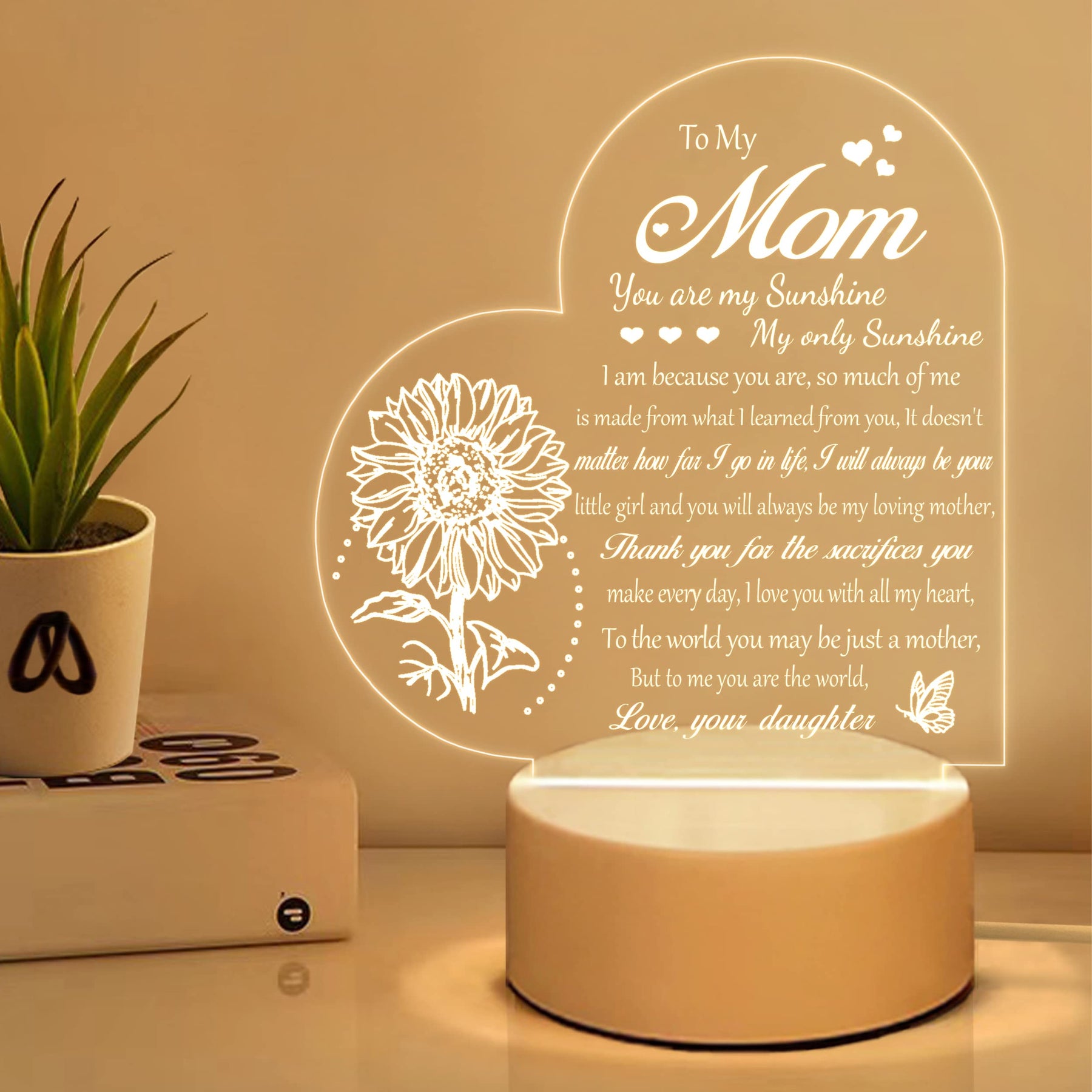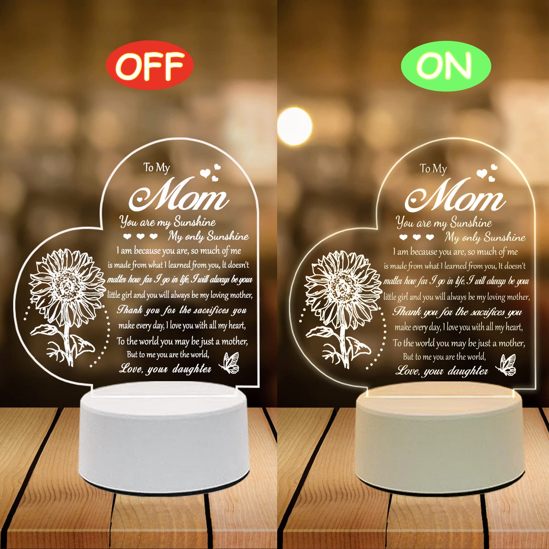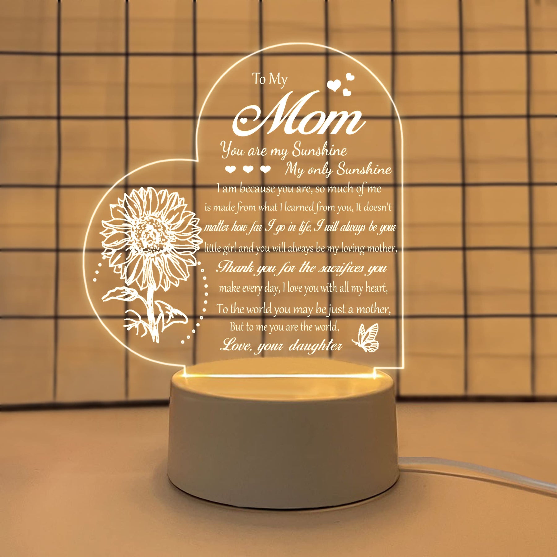 LE XIAOXI Mom Gifts, Gifts for Mom from Daughter - Acrylic Engraved Night Light