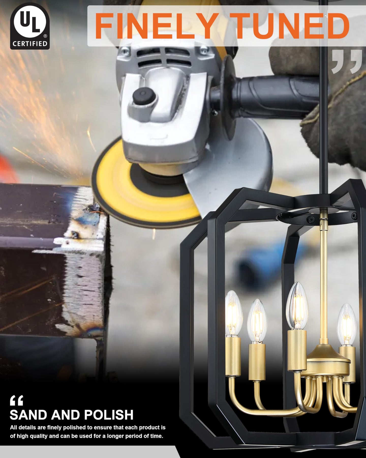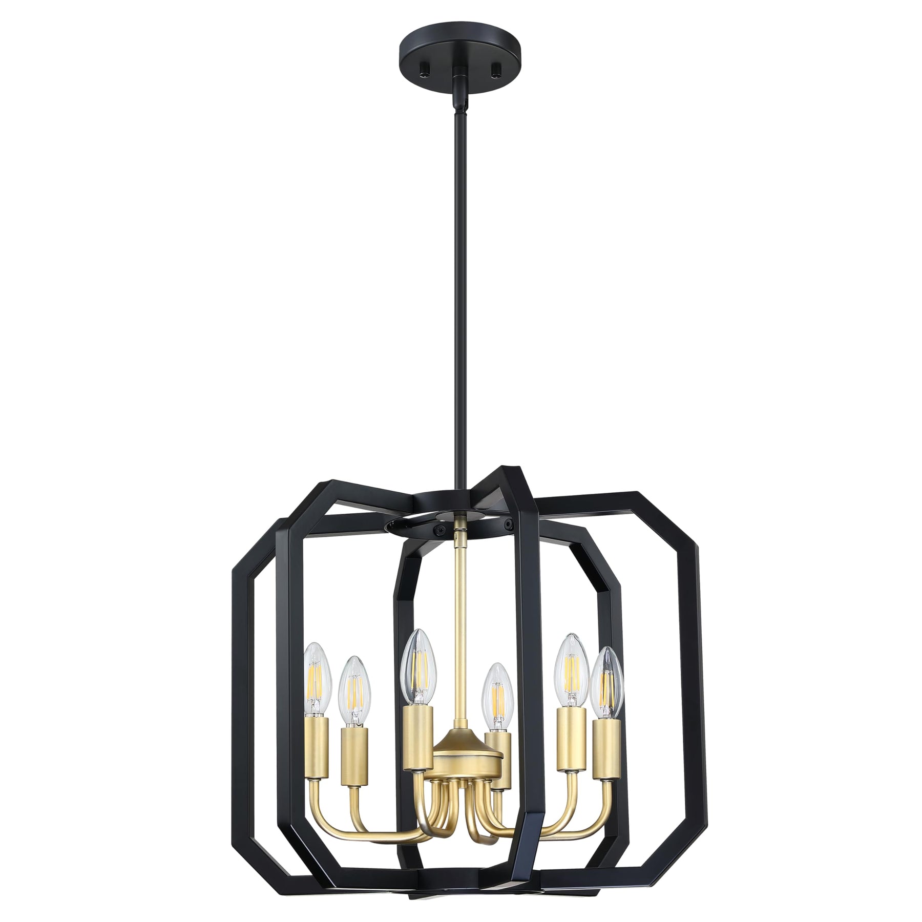 Doraimy Lighting 6 Light Farmhouse Adjustable Rod Black Pendant Light Fixtures Gold Finish,Rustic Hanging Ceiling Chandelier Light for Foyer Dining Room Kitchen Island Hallway