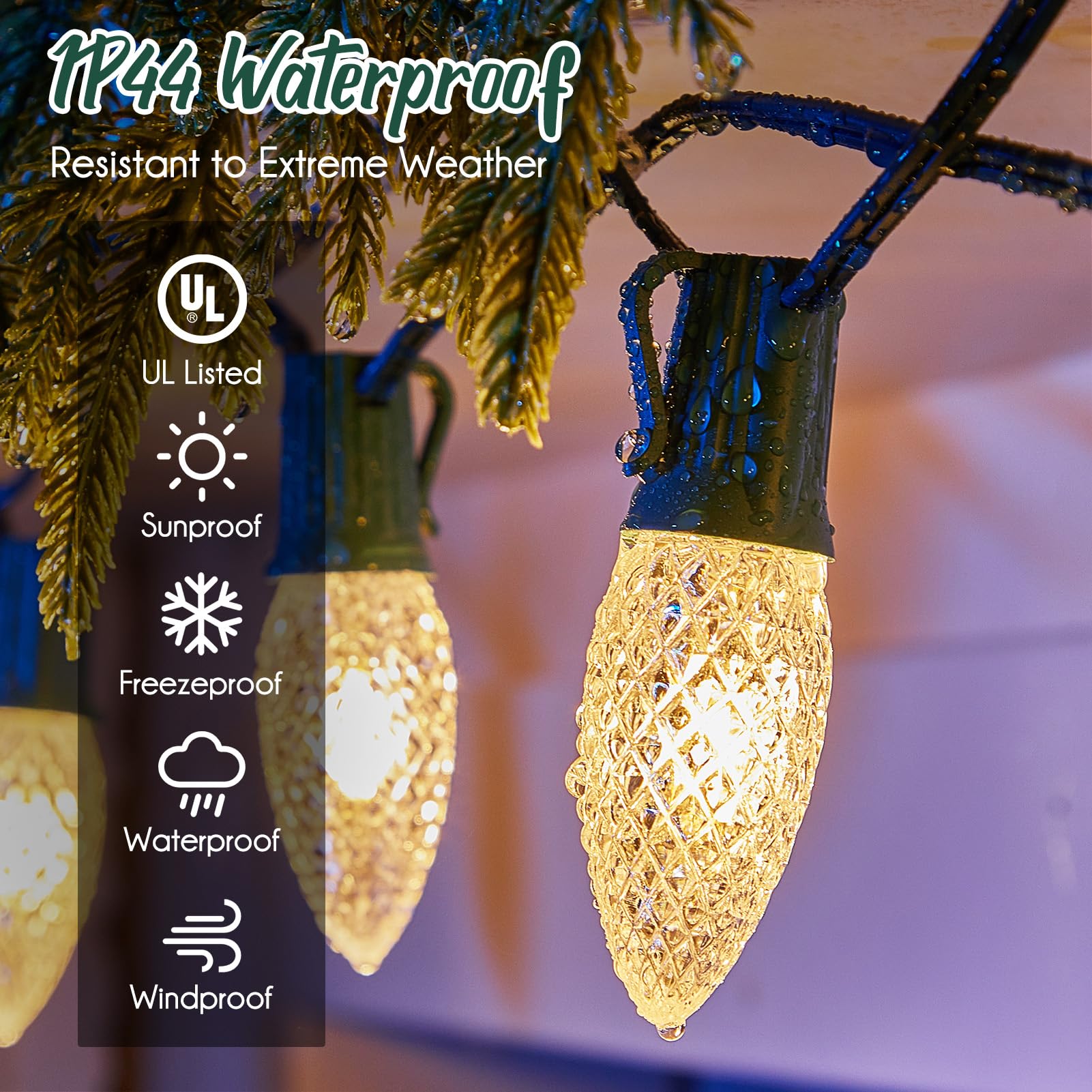 Extend Your Christmas Light Show - 100 FT C9 light strand comes with 100 E17 base sockets, 12" Spacing, making it perfect for creating light shows for Christmas decor, outdoor events, commercial spaces, or holiday decoration. Wrap around shrubs, fences, trees, poles, patios, and other indoor and outdoor areas. Safety Certified - C9 sockets made with premium quality 18 AWG SPT-1 green wire. UL certified, more durable and reliable performance. TS-24C-8A plug, built-in safety fuses in the male plugs, ensuring protection from overvoltage. Let us be safer and more assured during use string lights sockets. Easy to use - Simply screw the E17 base sockets into the Christmas light stringer base. To create indoor or outdoor Christmas decortion for your home, patio, or rooftop. Make the Christmas atmosphere more concrete. Easily Customizable - You can easily cut the Christmas stringer to fit any space; choose the length you need to customize your lighting decoration. DIY your indoor and outdoor lighting decorations to add a festive Christmas atmosphere to your home. Widely Used - The waterproof design makes C9 light socket suitable for indoor and outdoor use. It's not just for Christmas decor and Halloween, but also for everyday decoration, holiday events, and commercial spaces. Perfect decoration ideal for terraces, courtyards, gardens, cafes, fences, balconies, stairways, Christmas trees, and more.