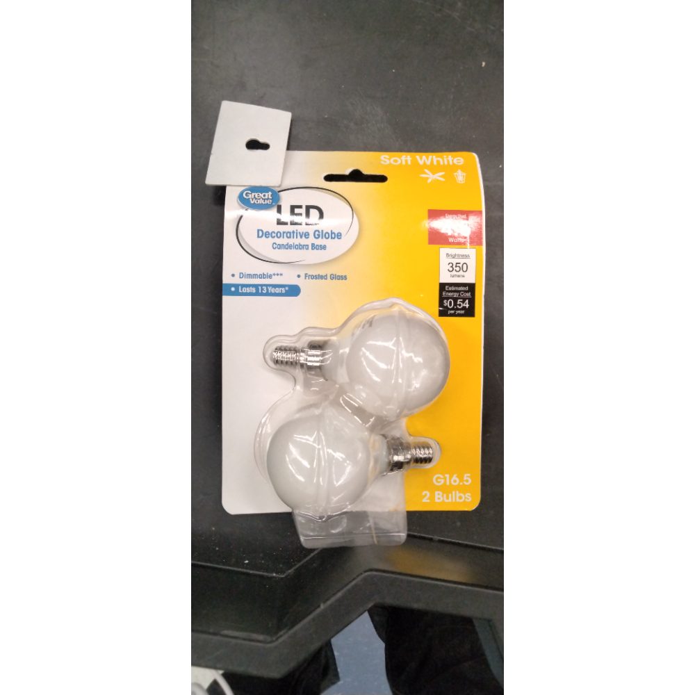Great Value LED 4.5W (40W Eqv) G16 Globe Lamp E12 Candelabra Base Dimmable Soft White 2pk