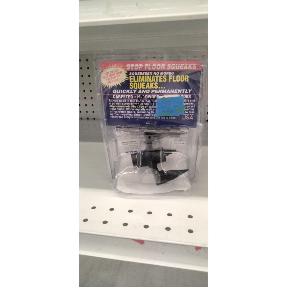 Eliminate Squeaky Floors for Good – A trusted US brand since 1993, The SQUEEEK NO MORE squeaky floor repair kit has been the ultimate fix to all creaks and squeeks on the floor, for the past 30 years. It’s a complete kit—simply grab a power drill and start eliminating those floor squeaks. Works on All Flooring Types – It's the only squeaky floor repair kit you'll need for carpet, hardwood, or linoleum. This floor repair system secures loose boards to joists, eliminating movement that causes creaks and squeaks. Works on stairs, too! Complete Floor Squeak Repair Kit – Includes 50 counter-snap breakaway screws, 2 joist finding screws, a square head driver bit, a tripod fixture for carpet, and a hardwood adapter to stop squeaky floors under carpet and hard surfaces. Fast & Accurate Joist Location – Joist finder drill bits help pinpoint joists beneath carpet and wood floors, ensuring precise placement for the floor fix screws kit. If squeaks persist, add more screws along the joist line. Damage-Free, Invisible Fix – Breakaway screws snap below the surface, ensuring a clean finish. The tripod fixture and hardwood adapter guide proper installation, allowing for a clean-finish squeaky hardwood floor fix.