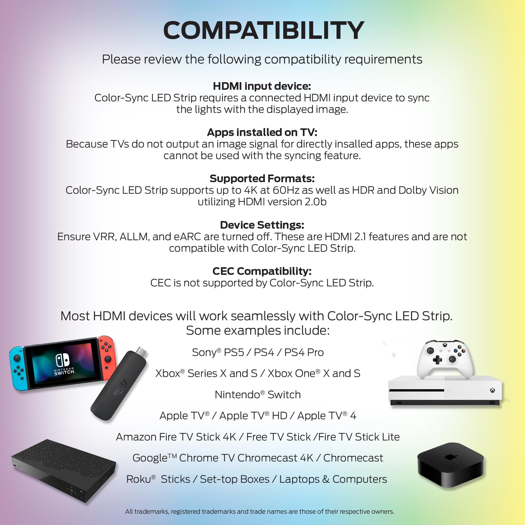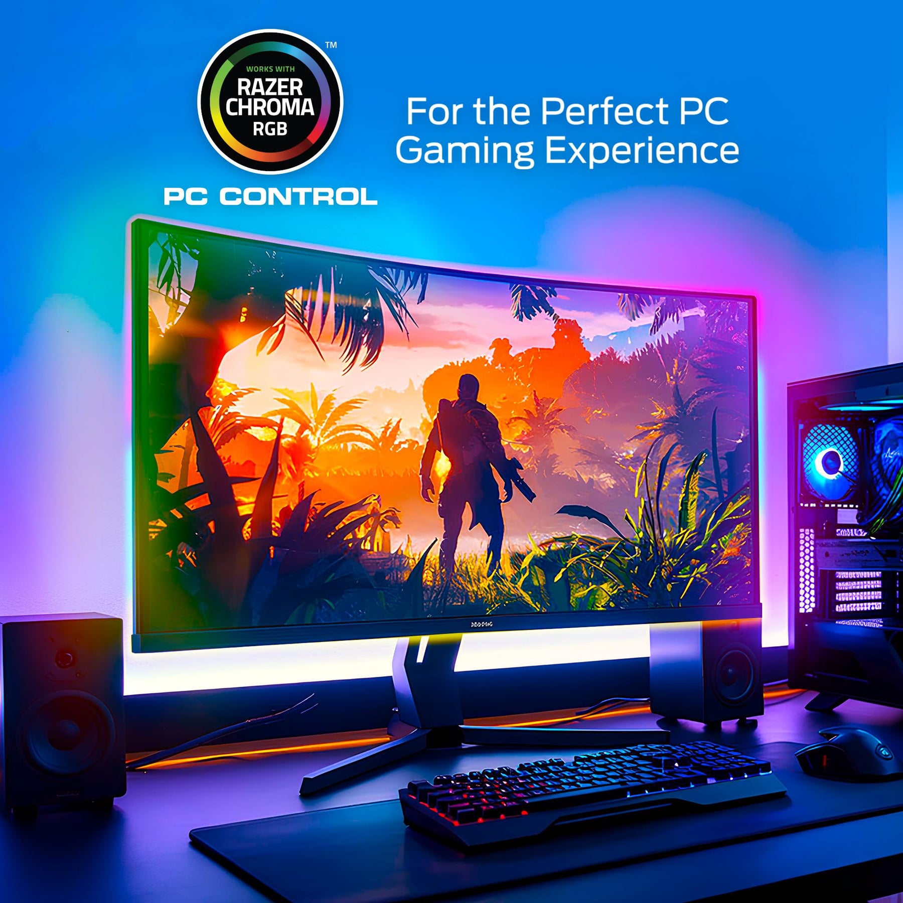 Immersive HDMI Color Sync with Real-Time Reactive Lighting: Enhance your viewing experience with HDMI Color Sync that mirrors on-screen colors in real time, creating vibrant ambient lighting behind your TV. The included HDMI box syncs instantly with your content, delivering next-level immersion for movies, shows, and gaming without lag or delay. Smart RGB+IC Color Flow with Dynamic Segmented Effects: Unlike standard RGB strips, RGB+IC technology allows for multi-color flowing effects along the same strip, with independently addressable segments for a fully animated and vivid lighting display. Elevate your space with stunning color gradients, shifting rainbows, and custom patterns that bring your screen to life. Voice & App Control with Full Smart Integration: Compatible with Alexa, Google Assistant, and Siri, this smart backlight strip gives you hands-free control over power, brightness, colors, and scenes. Use the Monster Smart App to access scheduling, custom scenes, timers, and grouping, creating personalized automation routines that match your lifestyle. Razer Chroma & Music Mode Integration for Gamers & Parties: Sync your lights with Razer Chroma RGB for dynamic in-game effects that react to what you’re playing. Or switch to Music Mode and let the lights pulse, dance, and flash to the rhythm of your music for an immersive party experience. Ideal for home theaters, gaming setups, and entertainment centers. Fits TVs up to 85” inches with Plug & Play: Designed to fit TVs up to 85 inches, this kit includes a full backlight LED strip with self-adhesive backing and a flexible layout to contour around your screen. With our plug and play setup, you can enjoy a clean installation that adds powerful style and immersive visuals in minutes without any installing any additional hardware or software.