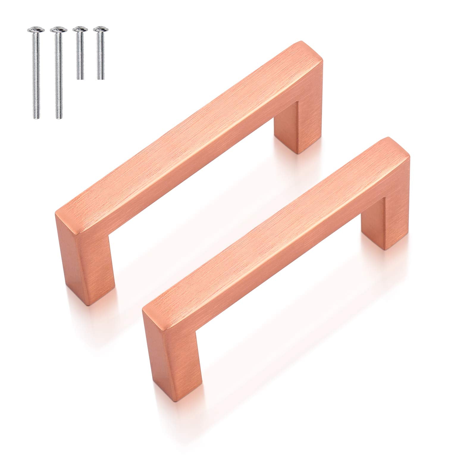 Fashion Furniture Direct 10 Pack Copper Kitchen Cabinet Pulls Stainless Steel,3 inch Hole Centers Stain Copper Dresser Pulls,Rose Gold Pulls for Kitchen Cabinets