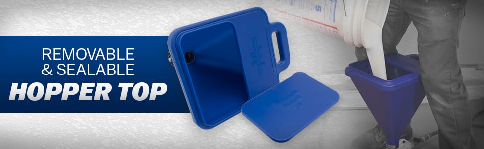 • The seamless 2-gallon hopper corners eliminate material build-up and reduces clogging.