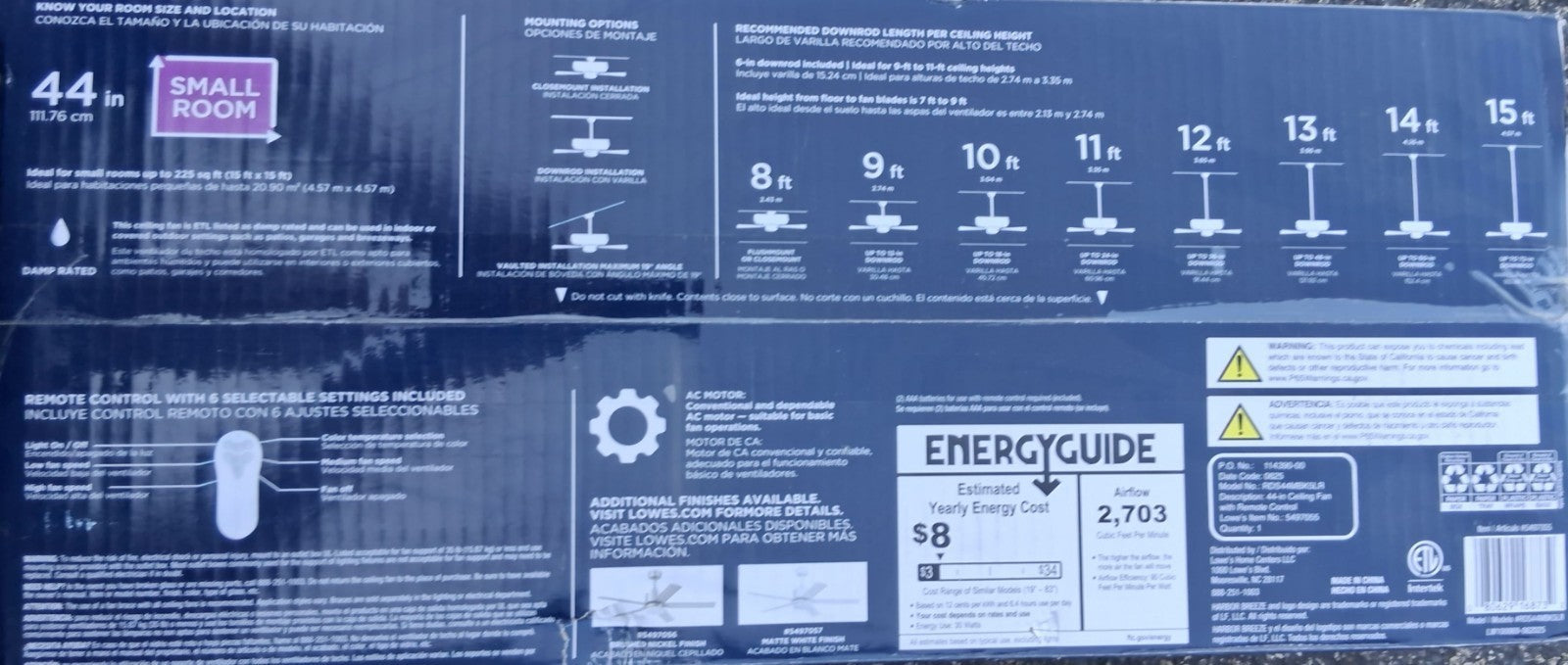 Harbor Breeze Reidsport 44" Matte Black 5 Blade Indoor/Outdoor Ceiling Fan NEW