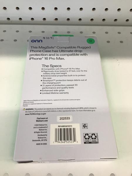 onn. 16 Pro Max MagSafe Compatible Rugged Phone Case - Ultimate Protection Retail $15.00