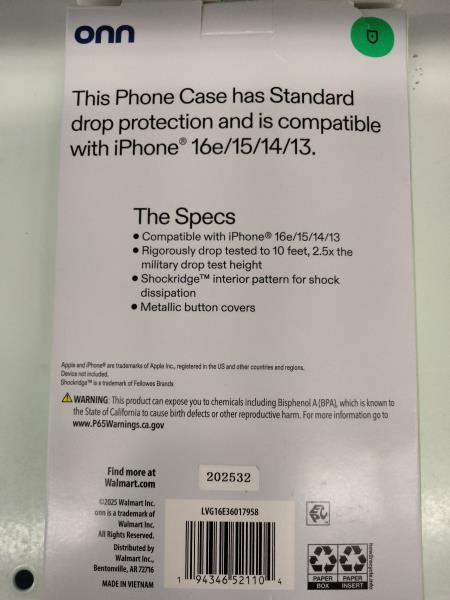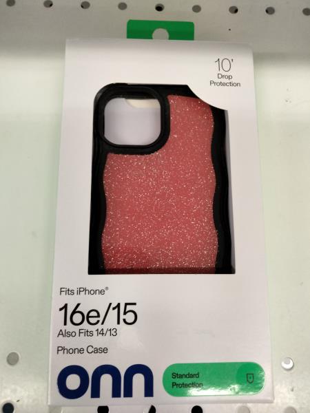 onn. iPhone 16e/15/14/13 Phone Case - 10' Drop Protection, Standard Protection, Metallic Button Covers, Glitter Pink Retail $15.00