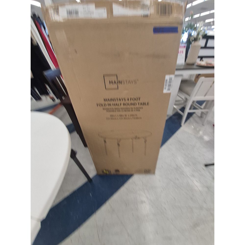 This Mainstays 4 foot round table is a convenient and versatile addition to any home or event space, offering easy storage and portability with its fold-in-half design. Perfect for gatherings, parties, or everyday use, this table combines functionality with a clean, simple aesthetic.