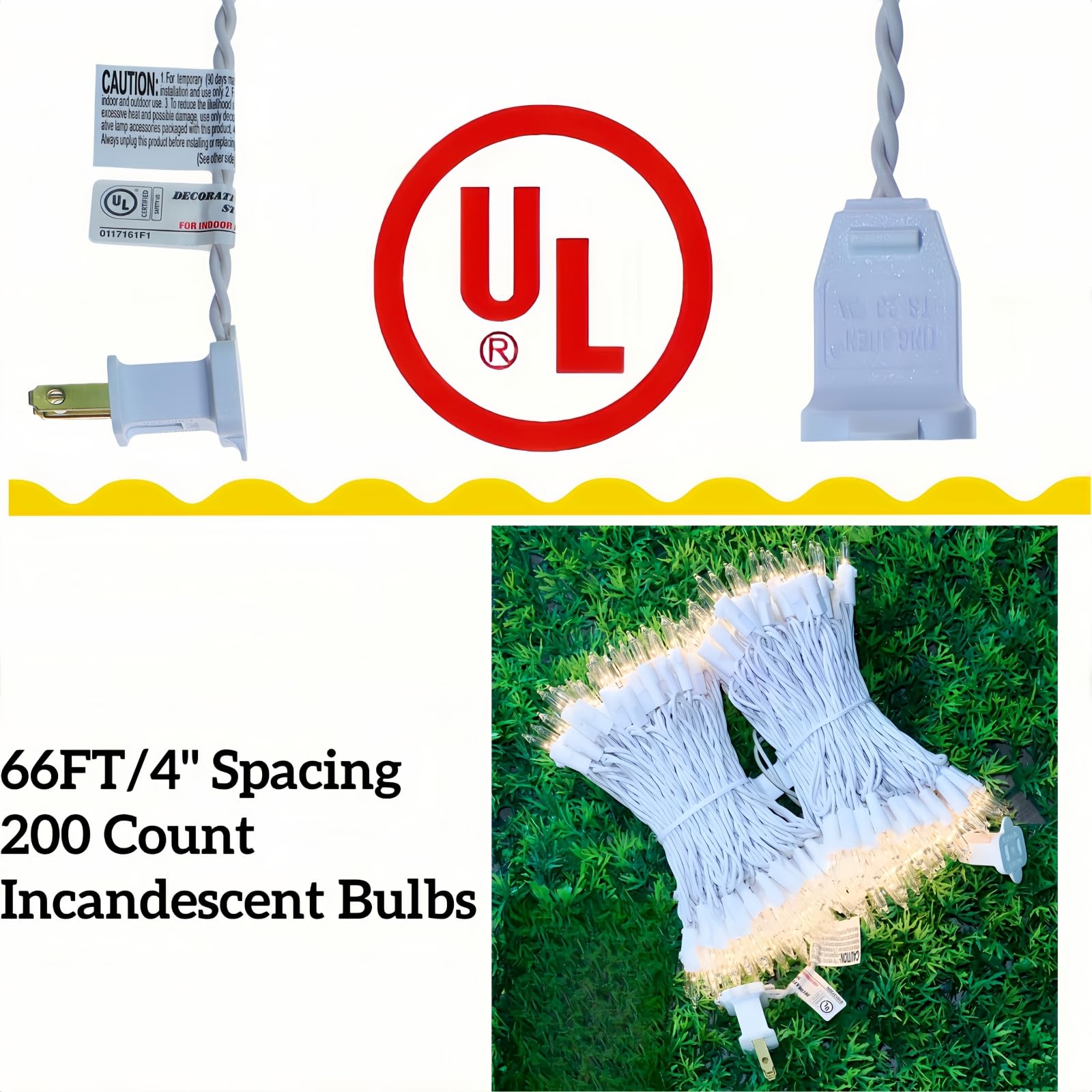 BULBS OF BUILT-IN FUSE: Other bulbs on the string lights always on lighted if some bulbs to drop out. LONG LIFE: Long life 3000 hours super bright mini bulbs. INDOOR OUTDOOR: Wraps trees, window, eave, fences, staircase railings and more. END TO END: Total can be connect up 5 sets 100 light(165ft), 4 inches spacing. LAMP-HOLDER WITH BUCKLE: The bulbs don't fall or pull out easily.