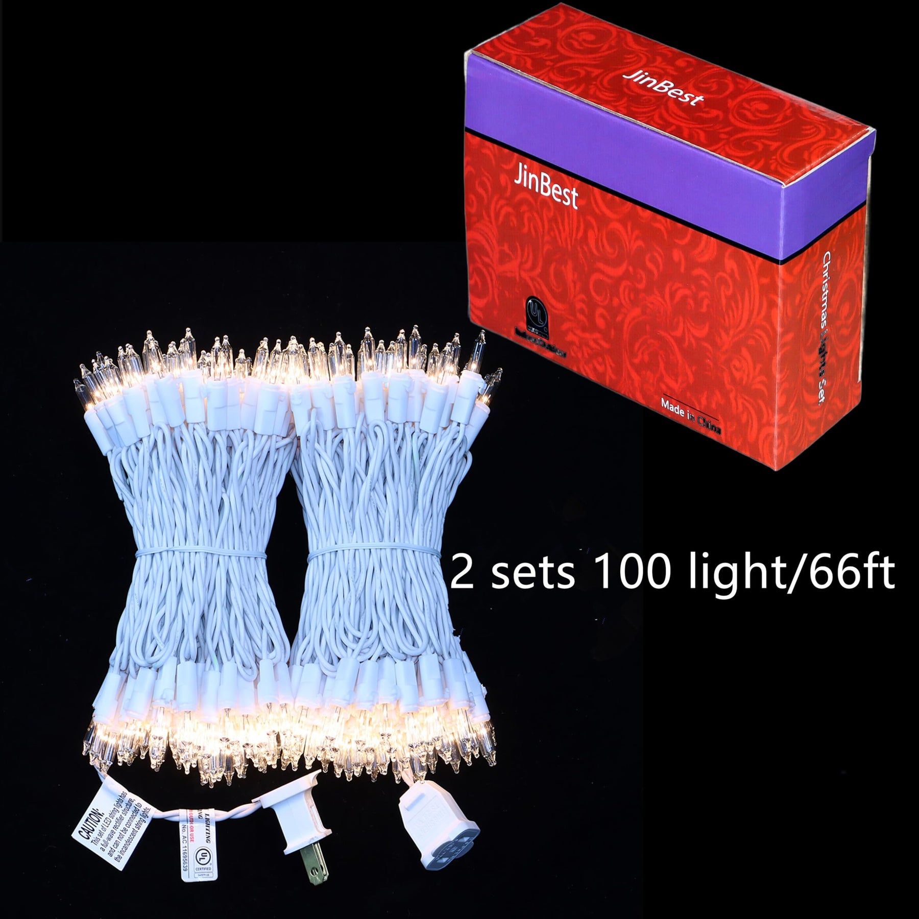 JinBest 200 Clear Bulbs White Wire Christmas Lights, Commercial Grade Decorative Lighting String Pack of 2 Sets 100 Light, for Indoor Outdoor Party, Garden, Patio.