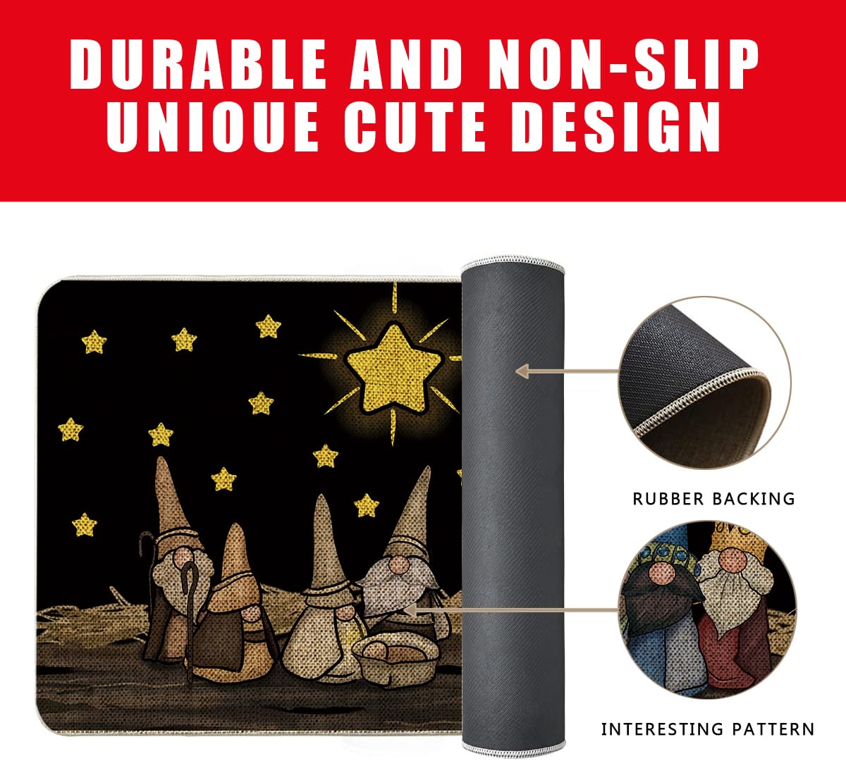 Durable & NON-SLIP: The indoor door mat is made of 100% Polyester, Backed with non-slip recycled rubber, and high-quality durable construction that is stain resistant. LOW PROFILE & FASHION: Our doormat measures 17" x 27", low profile design so doors won't get stuck. Design with stylish colors and patterns to match any decor, making your home more cute and sweet. EASY TO CLEAN: Just spray water over our welcome mats for the front door outdoor and shake it off. The burlap door mats dry super quickly and are ready to use in a short time. The stylish and neutral design of outdoor mats for the front doors fits every front door decor. PERFECT CHRISTMAS DECOR - These durable rugs aren't just for your front porch or entryway, use on patios, in a garage, laundry room, mud porch, entryway - any entry or exit with high traffic would benefit from these indoor/outdoor rugs. SATISFACTION GUARANTEE: We have a 24/7 support team, if you aren't 100% satisfied, we will provide you with a refund or a free replacement - so you can place an order now with confidence and enjoy really great product.