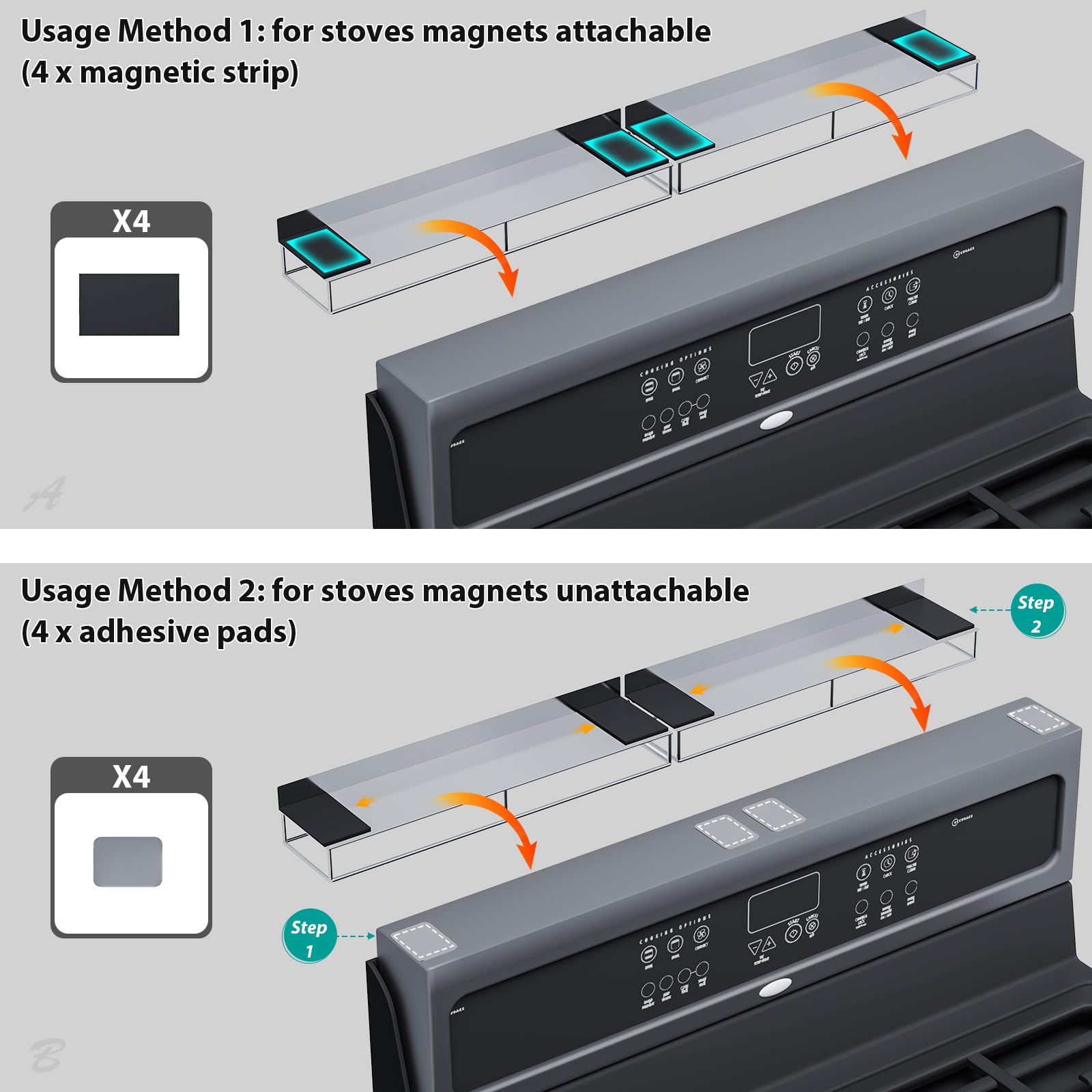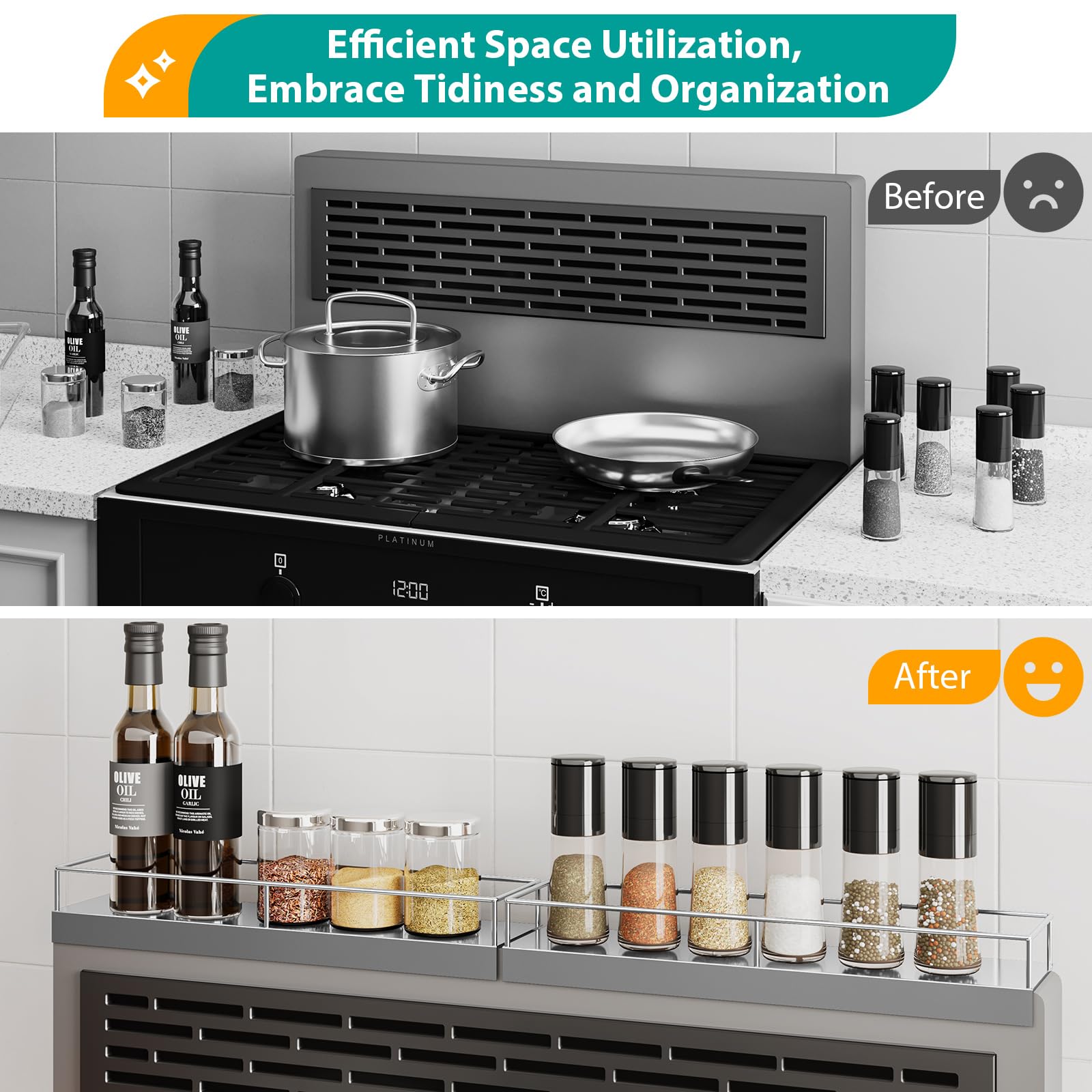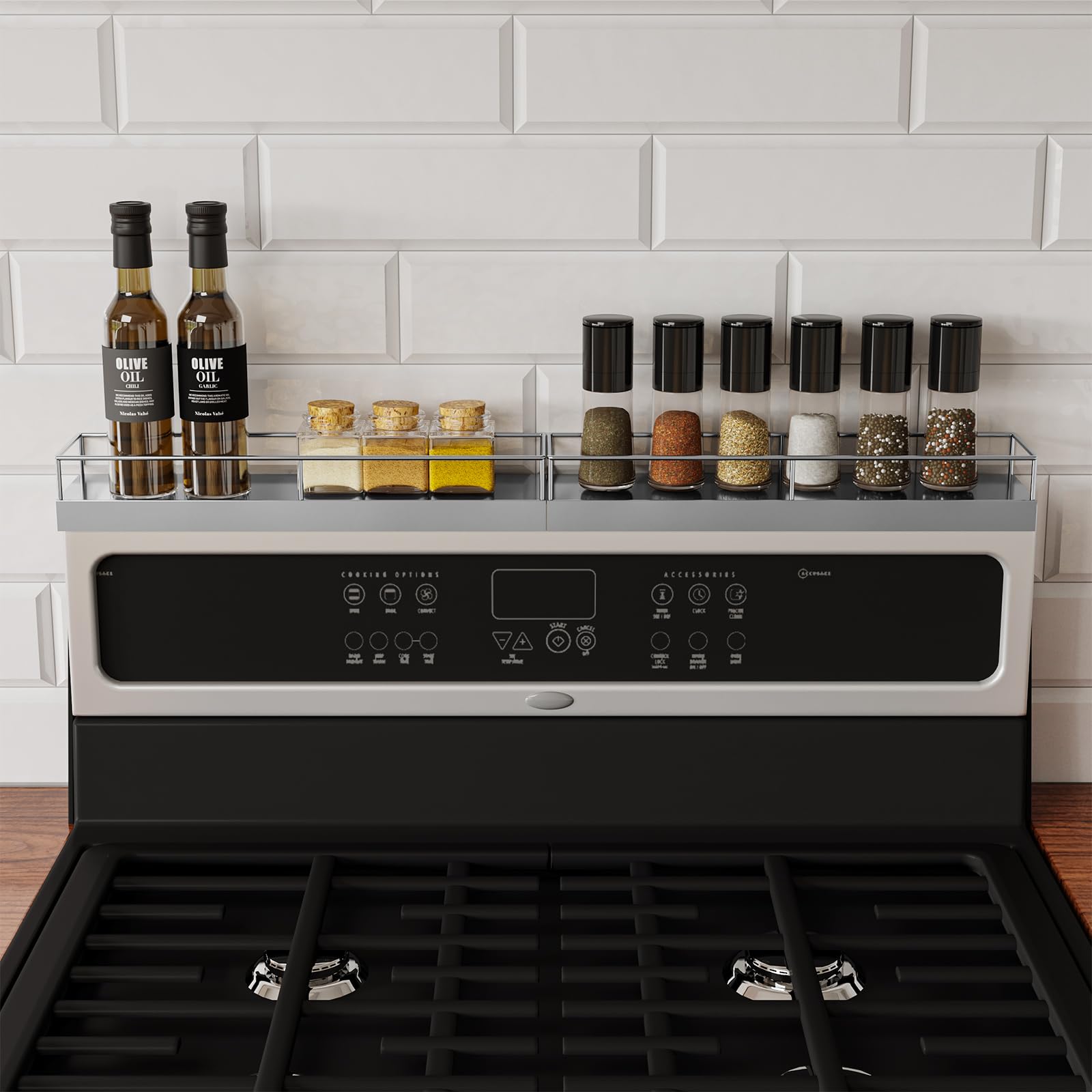 SYDWORKSHOP 30" Magnetic Shelf for Stove tops, 2 Pack 15'' Stove Spice Racks Organizer with Strong Magnets and Adhesive Pads for Small Kitchens (Silvery)