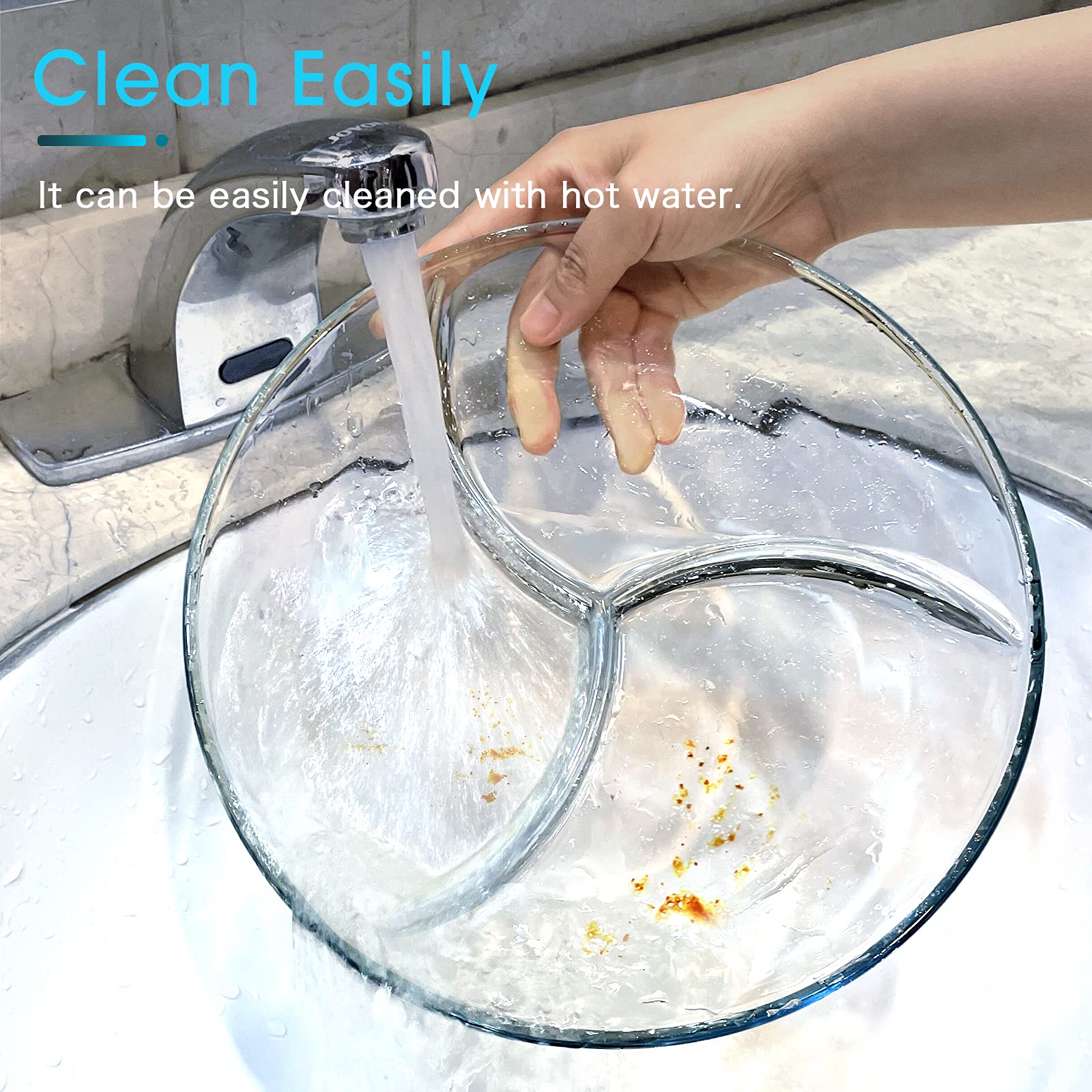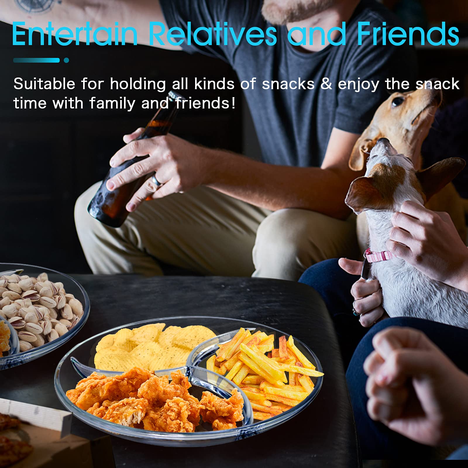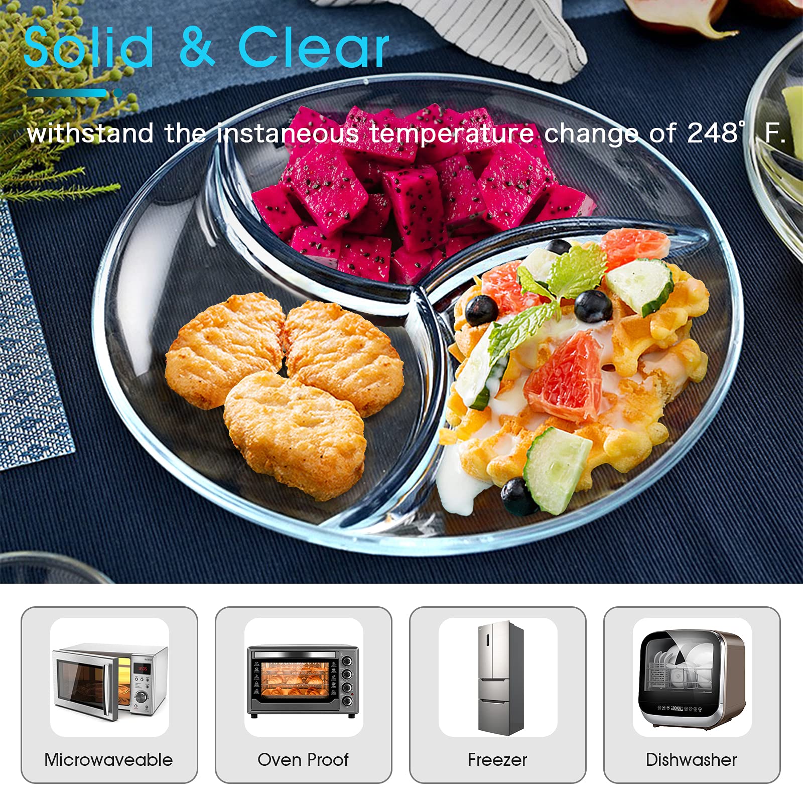 ?5 Sectionals for Precise Control?You will get 5 different sections for more choices of wet and dry foods. More choices & Greater Possibility. ?Keeps Food Separated? Lots of people prefer that their food not touch.now you can reheat things like chicken, mashed potatoes and gravy, and vegetables on the same divided dish without it all running together in a big mess. ?Portion Control? Seeing the dividers forces you to separate the food into appropriate portions. The smaller sections of the food portion plate for starches and proteins and the larges section for vegetables/fruits. ?No Need for Additional Dishes?Are you still worrying about washing a lot of dishes? No more numerous small dishes to clean up, put main dish, veggies and fruits all on this sectional plates and it's a perfect meal! ?Microwave, Oven, Freezer, Dishwasher Safe?NUTRIUPS glass divided plate is made of tempered glass which can withstand temperatures between 482? and -4? without the risk of cracking or shattering. The portion plates can be transited directly from a freezer to a hot oven, serving your food on the table without changing containers.
