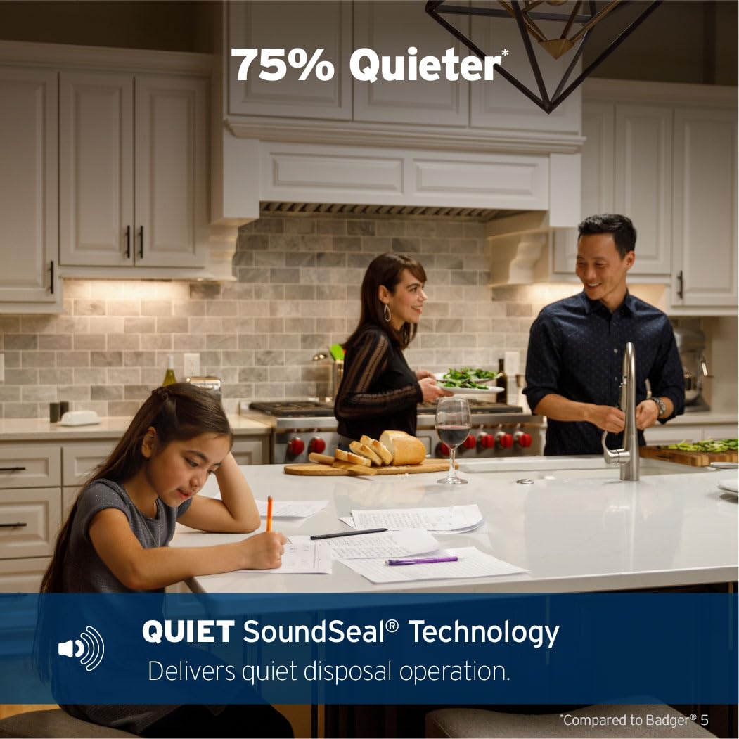 • QUIET AND COMPACT: Garbage disposer with Quiet SoundSeal technology for quieter operation than that of standard disposals; space-saving design to easily fit under sink, leaving room for other small kitchen appliances, like an instant hot water dispenser
