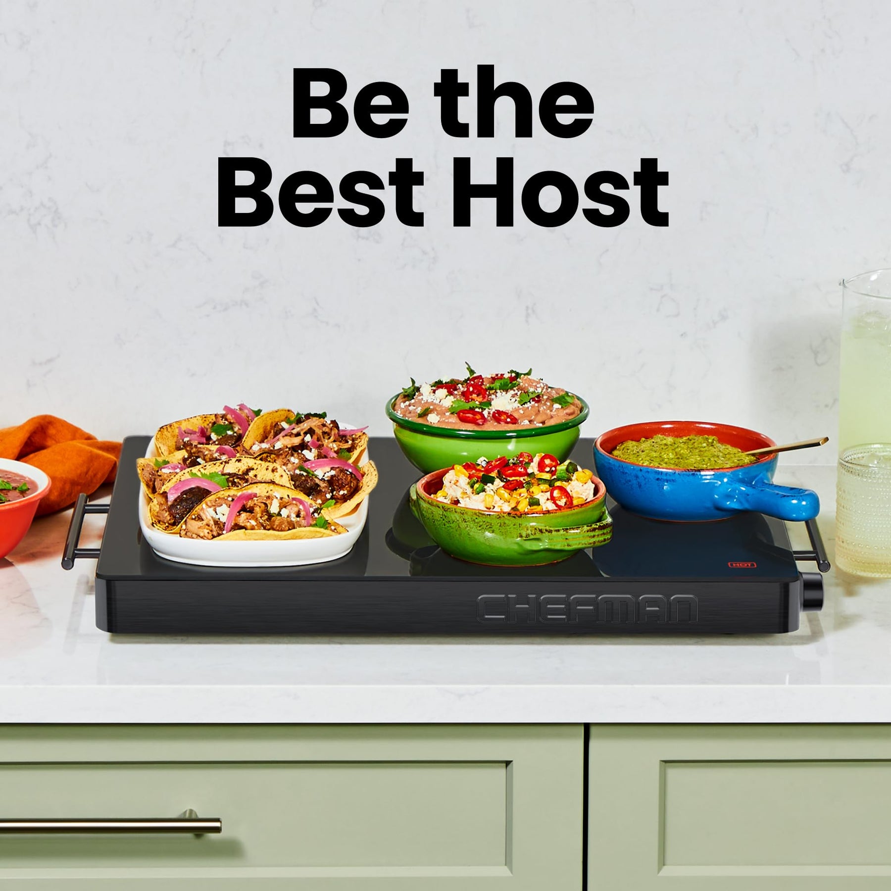 Chefman Electric Warming Tray with Adjustable Temperature Control, Perfect For Buffets, Restaurants, Parties, Events, and Home Dinners, Large 21†x 16†Glass-Top Surface Keeps Food Hot – Black