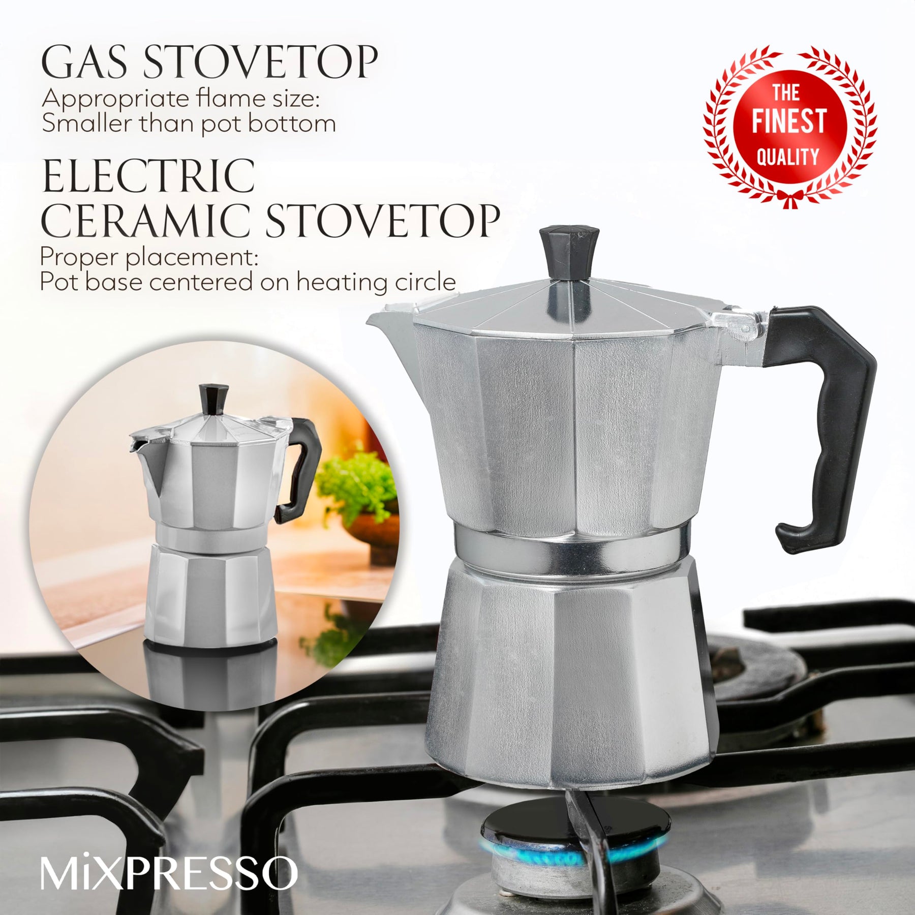 Mixpresso 3 Cup Moka Pot Cuban Coffee Maker, Moka Pot for Gas, Electric Stove Top, Classic Italian Coffee Maker, Stovetop Espresso Maker, Camping Pot Makes 3 Espresso Cup 5 Oz