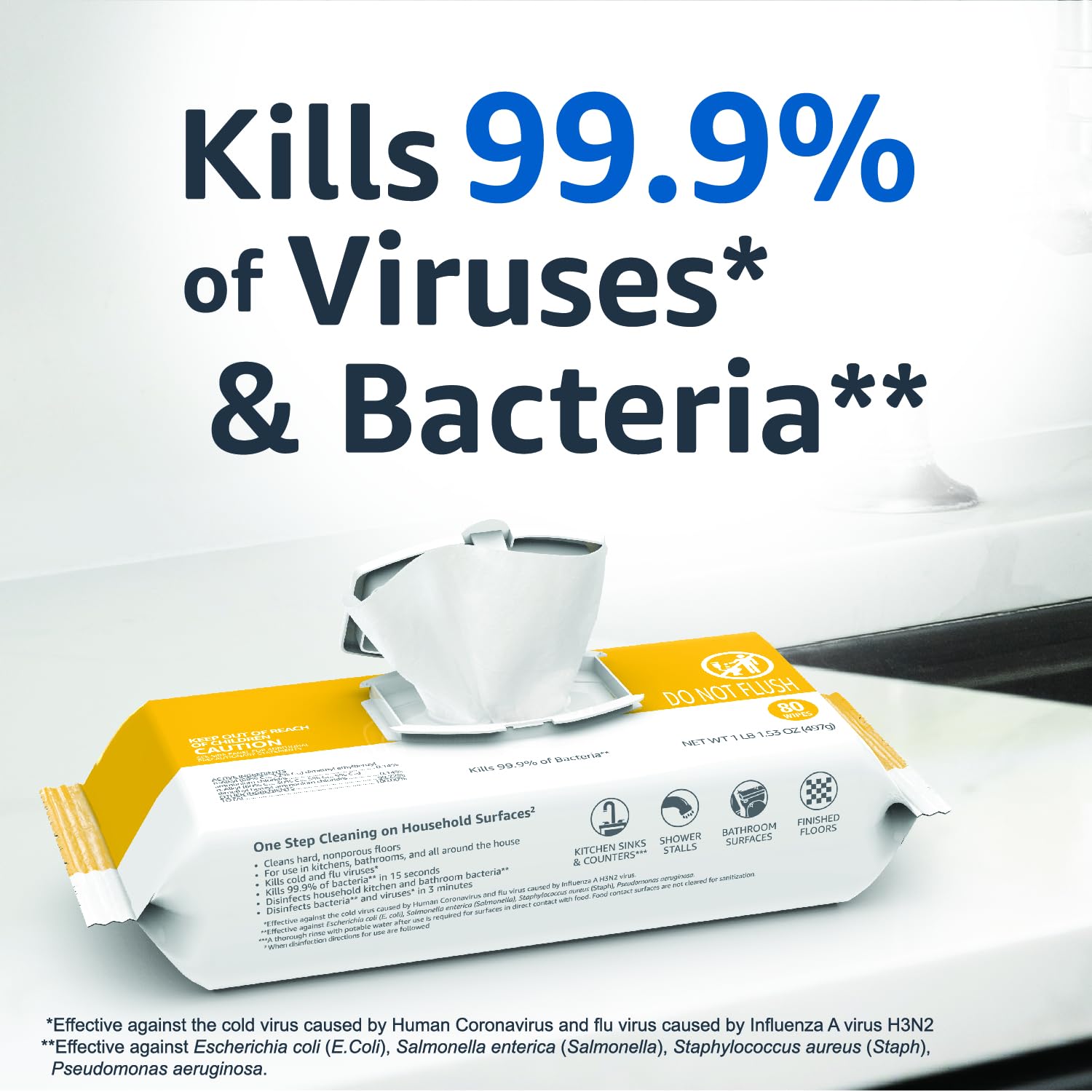 Amazon Basics Disinfecting Wipes, Lemon & Fresh Air Scent, Sanitizes/Cleans/Disinfects/Deodorizes, 320 Count (4 Packs of 80)