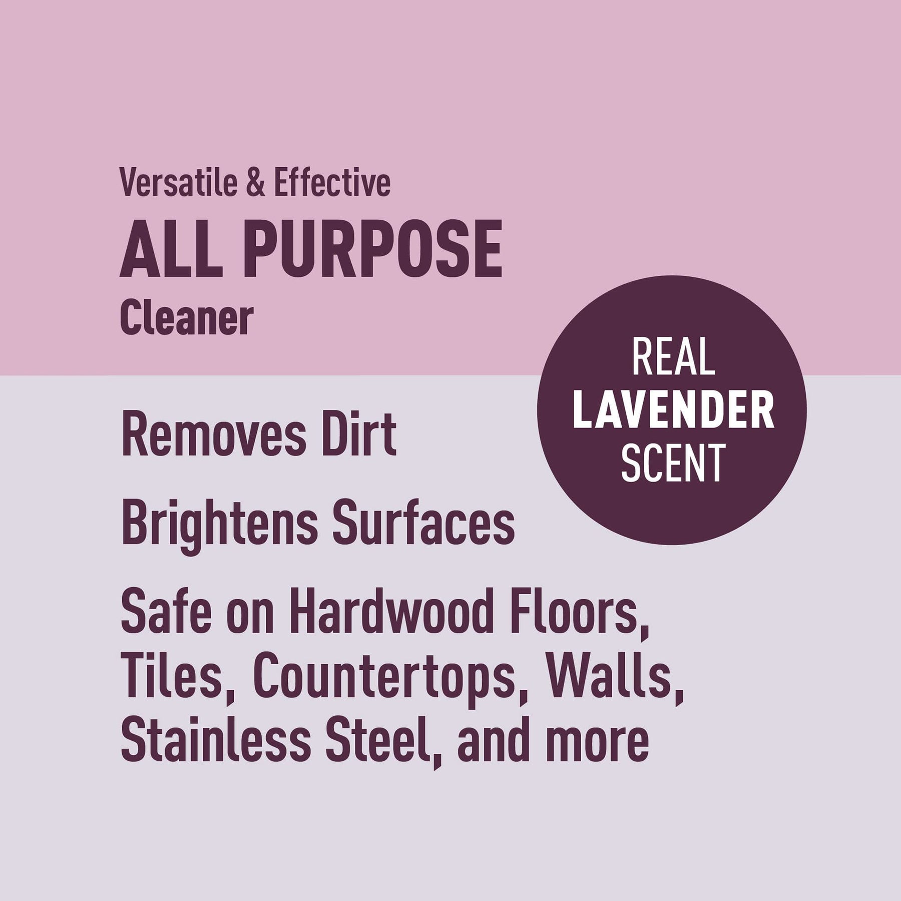 SPECIALLY FORMULATED: Removes dirt & grime for a powerful clean REAL LAVENDER SCENT: Lavender essential oils leave surfaces clean with a fresh, lingering lavender aroma STREAK FREE: Contains no harsh chemicals, petroleum-based solvents, phosphates, acids, dyes, or bleach VERSATILE & EFFECTIVE: Safe on hardwood floors, tile surfaces, countertops, walls, stainless steel, and more HOW TO USE: Spray on surface, rinse or wipe with clean cloth to help keep your home or office fresh and bright Compare to Mrs. Meyer’s All-Purpose Cleaner Spray, Lavender An Amazon brand