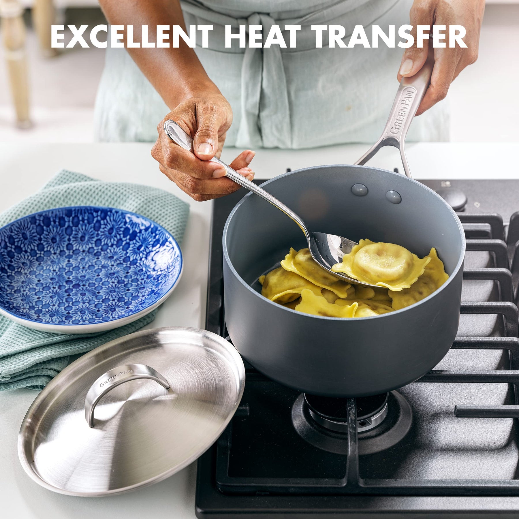 GreenPan Paris Pro Hard Anodized Healthy Ceramic Nonstick, 14 Piece Cookware Pots and Pans Set with Stainless Steel Lids, PFAS-Free, Dishwasher Safe, Grey Retail $359.00