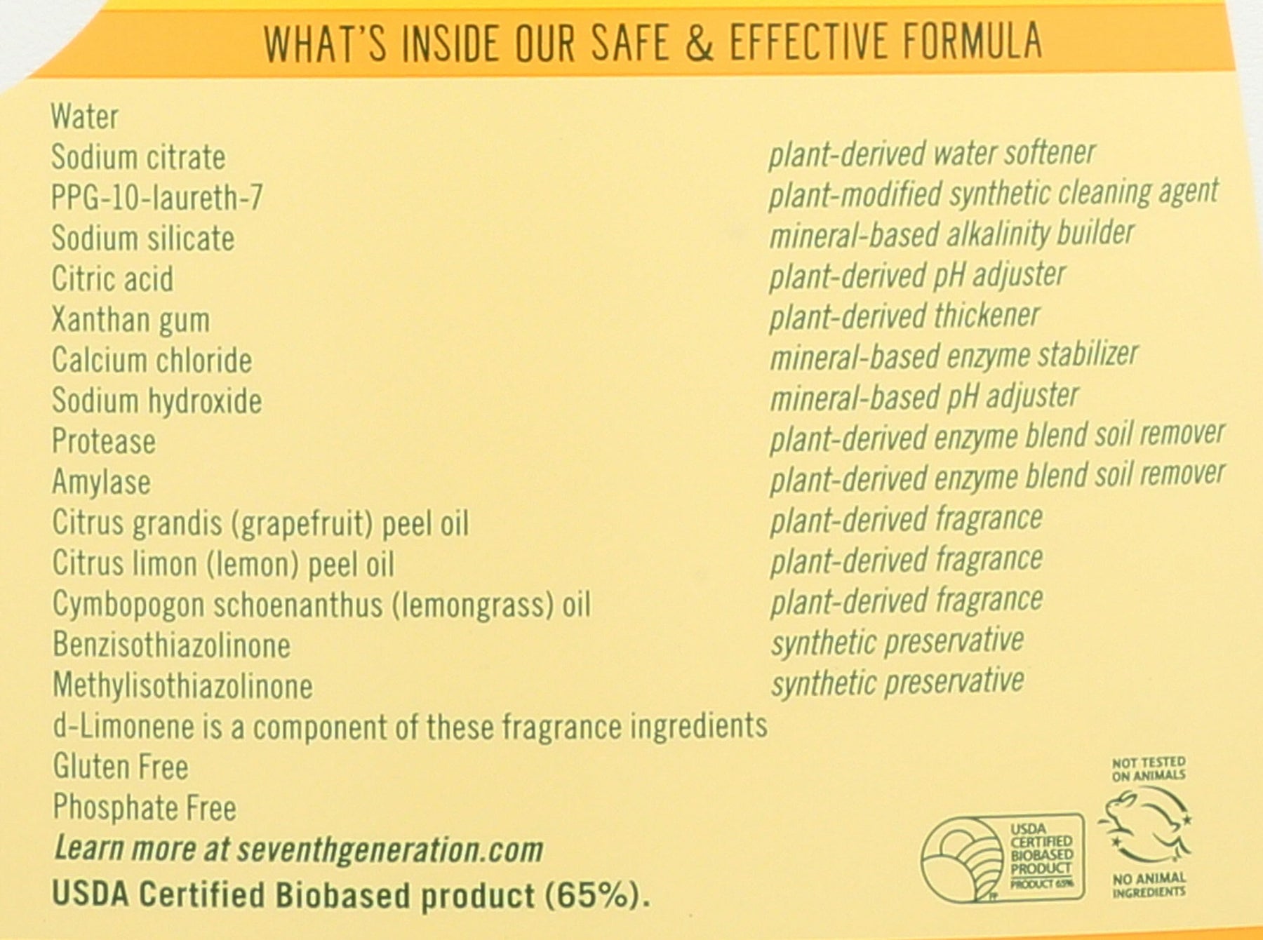 Chlorine bleach-free Phosphate-free natural dishwashing detergent ge Free of synthetic fragrances, phosphate and dyes