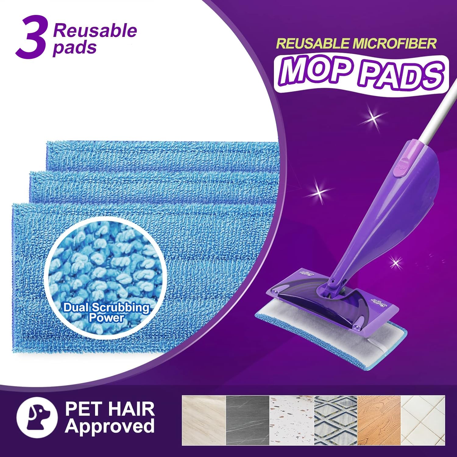 [COMPATIBILITY] The size of our mop pad is 11.55.5 inches, compatible with Swiffer Wet Jet & All 10 11 12 Inch mops. [SAVE YOU TIME] Microfiber mop pad, made of high-quality microfiber, soft and durable, and dry and wet, super-performance water absorption function, easy to face the wet environment, soft microfiber is easy It can clean up dirt while protecting your floor and furniture. It can easily suck up and fix dirt, debris, pet hair, etc. during dry sweeping. Make cleaning easier and save you time. [EASY REPLACEMENT] The mop mat adapted to the Velcro can be directly attached to the bottom of the mop, and you can just tear it off when you replace it! [MACHINE WASHABLE] Ultra-high quality mop pads are easily machine washable.It can be washed with water up to 100 times!so easy to clean! Compared with disposable mop pads that need to be replaced frequently, it saves money. [PACKAGES AND SERVICES]Mop Pads 3 Pack, Compatible with Swiffer Wet Jet Mops, Washable Microfiber Mop Pads for Wet & Dry Use Mop Pad Refills,Durable and Fitting for Home/Office Cleaning Tools (Blue).We are very willing to provide you with high-quality after-sales service.