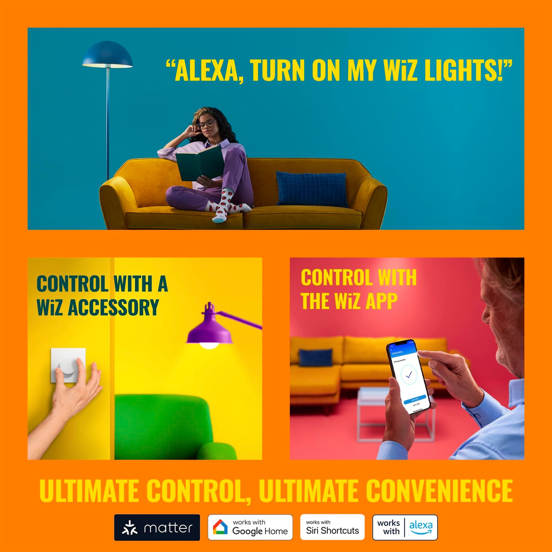 • EASY TO USE - Adjust lights with your smartphone voice, the WiZ remote control, or by using your existing wall switch. Works with Google Home, Alexa, and Siri Shortcuts.
