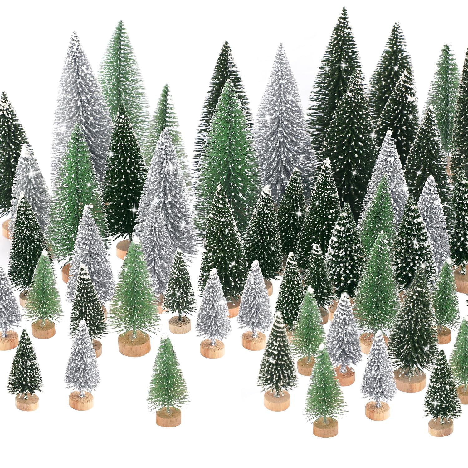 ?Vivid & Adorable Design?Our set of miniature fake Christmas trees offers a range of colors, including green, ivory, and pink, each delicately adorned with snow. These mini table top christmas tree look astonishingly realistic, rendering them ideal for craft DIY winter scenes, Christmas ornaments, themed parties, and infusing spaces with festive charm. ?Package Included? You'll receive a total of 30 charming little Christmas trees. These trees come in five varying sizes, ranging from 2.8 to 6.3 inches. This assortment of styles and dimensions caters to your diverse needs for holiday and Christmas room decor, ensuring a perfect fit for any setting. ?Sturdy Wooden Bases?Crafted with excellence, Ayieyill's bottle trees are composed of high-quality sisal silk and plastic, anchored by durable wooden bases for stability. These small Christmas trees exhibit both flexibility and durability, allowing you to achieve snow-white party decorations or vintage Christmas themes with ease. ?Versatile Utility?These adorable miniature model trees serve a multitude of purposes. They are perfect for enhancing Christmas decorations, parties, home setups, village scenes, railroad displays, offices, tables, craft exhibits, and even living rooms and kitchens. These trees are a versatile addition to your festive decorations. ?Gift of Christmas Magic?The snow-covered Christmas trees don't just embellish spaces; they also make for a perfect gift. Delight your kids, family, and friends with this enchanting gift that empowers them to create winter village scenes or mini gardens, infusing the joy of the holiday season into their surroundings.