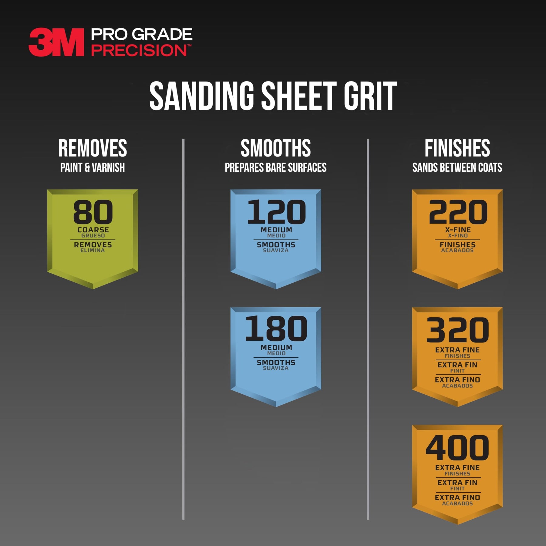 Removes material quickly with Assorted grit abrasive for fast paint stripping heavy surface prep and aggressive sanding jobs on wood metal and drywall Features advanced no-slip grip backing that resists tearing and keeps the sanding sheet securely in place during heavy-duty applications Full-size 9" x 11" sheets provide large coverage area and flexibility for use by hand or with a sanding block on flat or contoured surfaces Long-lasting abrasive mineral cuts through layers efficiently and is engineered to maintain performance under pressure Trusted 3M quality delivers consistent results on tough sanding projects ideal for construction woodworking remodeling and paint prep