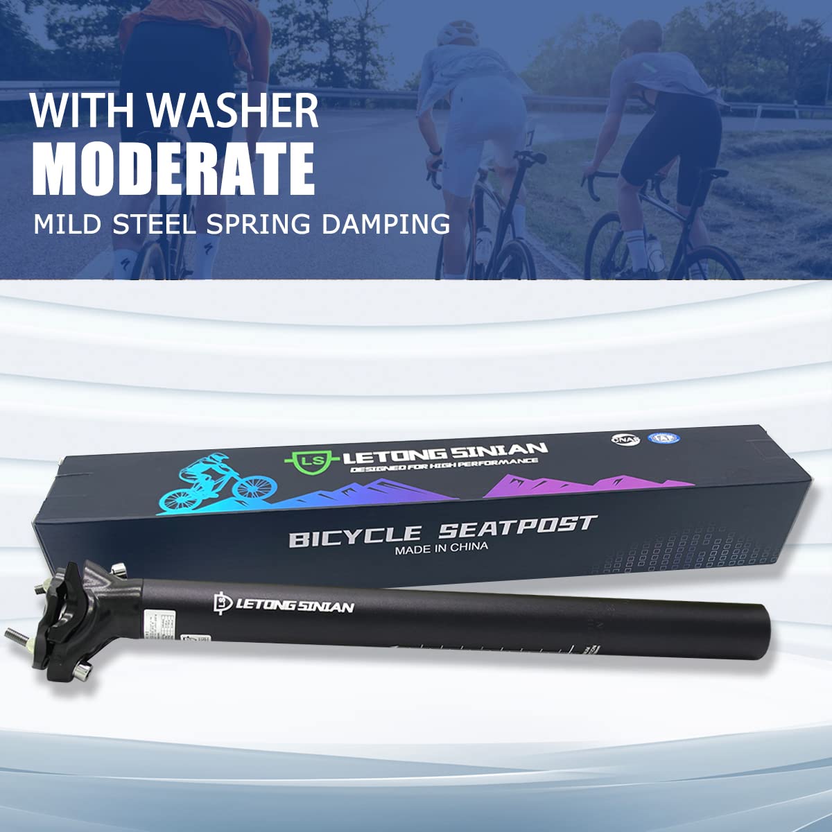 [HIGH QUALITY AND DURABILITY] - Lightweight one-piece bicycle seatpost is made of high quality aluminum alloy, which is light weight, corrosion resistant, not easy to damage, and can be used for a long time. Maximum load is 265 lbs. [MODEL DIMENSIONS] - Aluminum bike seatpost with diameter of 27.2mm / 30.9mm / 31.6mm and length of 350mm, suitable for men and women. Note: Please accurately measure the size of the original seat post before purchasing, and choose the same size to buy. [ADJUSTABLE SEAT ANGLE] -The seatpost clamp can flexibly change the seat angle, which can be adjusted according to your driving habits, making driving more comfortable. The seatpost clamp locks the saddle firmly, making it comfortable and safe to ride without wobbling. [EASY TO ASSEMBLE] - The bike seat post is printed with a clear scale, allowing you to know exactly the insertion depth of the seatpost, easy to install and use. Our bicycle seat posts are suitable for city, road, hiking and touring bikes. [BRAND GUARANTEE] - GUANG ZHIZHUO focuses on the development and research of bicycle category. If the seatpost you purchased has any quality problems within 30 days, please contact us for a return and exchange without any risk. Take action now and add a high quality seatpost to your cart!