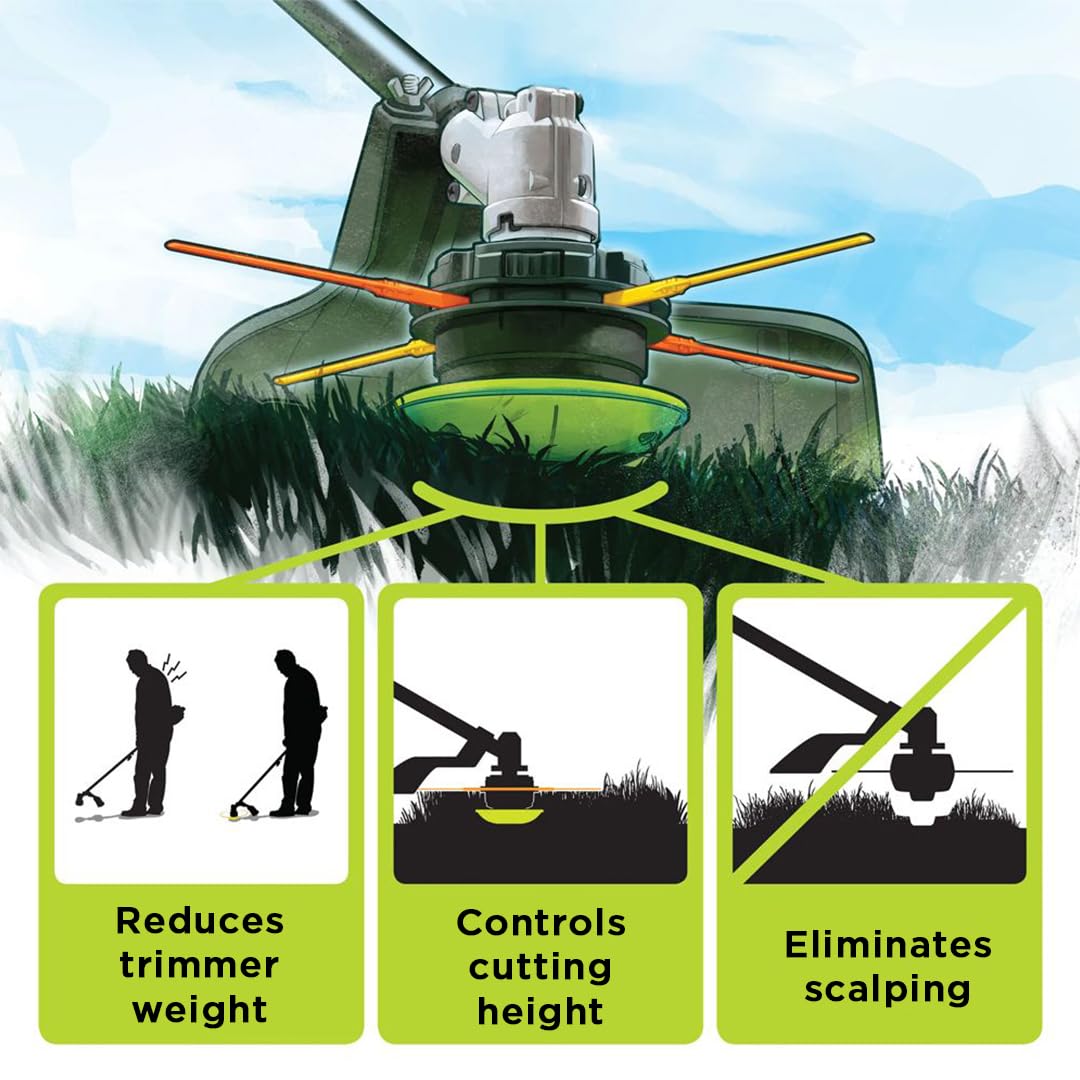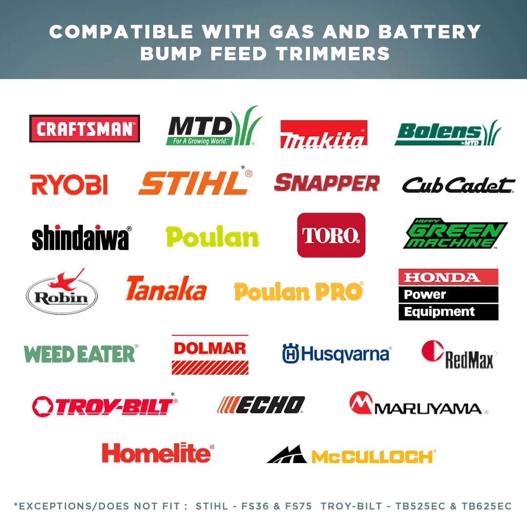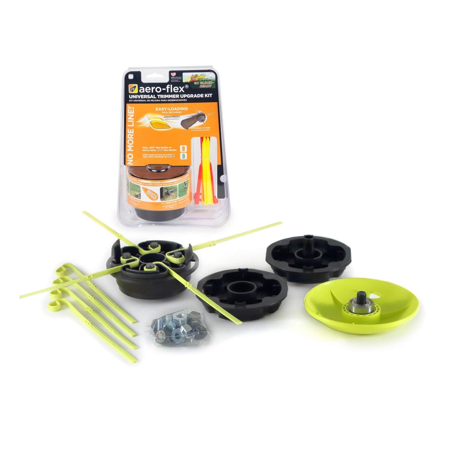 TRIMMER-HEAD REPLACEMENT: No spools. No springs. No rewinding. Simply snap and replace. Compatible with most gas and battery powered bump feed trimmers. EASY RELOAD: Aero-Flex line blades can be reloaded in a fraction of the time as frustrating trimmer line. FLEXIBLE BLADES: Aero-Flex line blades are flexible, safe, and maintain their durability when cutting. EFFICIENT: Patented aerodynamic blades designed to slice through dense vegetation allow you to run your trimmer at half speed while finishing the job in half the time. INCREASED CUTTING CONTROL: Neon-colored blades allow you to see your cutting radius. So you only cut what you want, where you want. INCREASED CUTTING CONTROL: Neon-colored blades allow you to see your cutting radius. So you only cut what you want, where you want. MADE IN THE USA: Produced in the USA, the AERO-FLEX fits most gas/battery-powered trimmers (see list). Visit the Aero-Flex store to check compatibility.