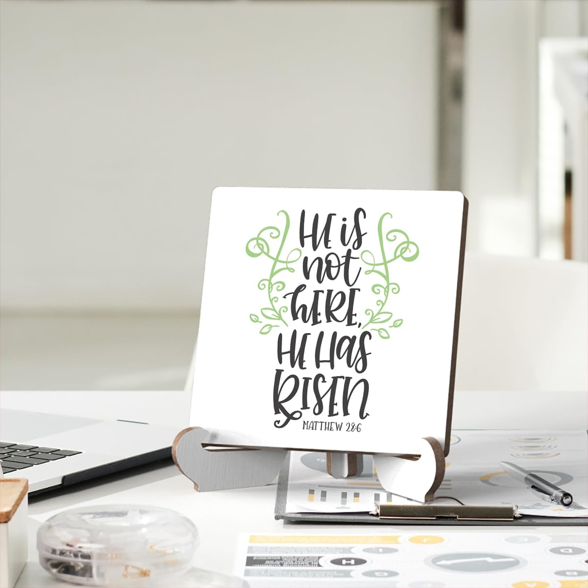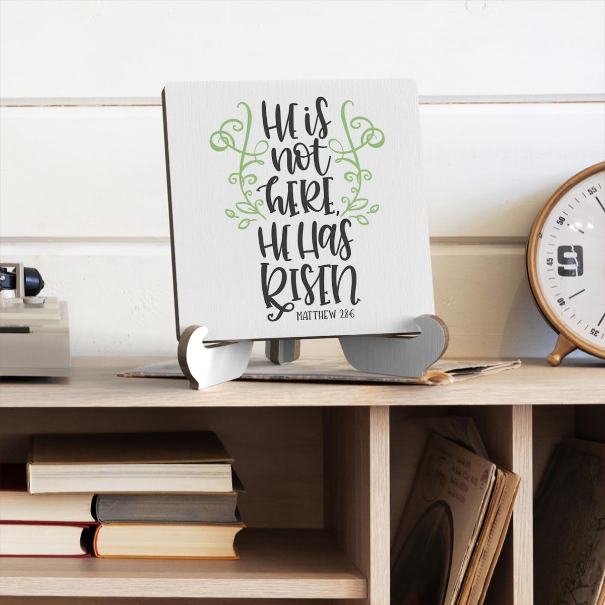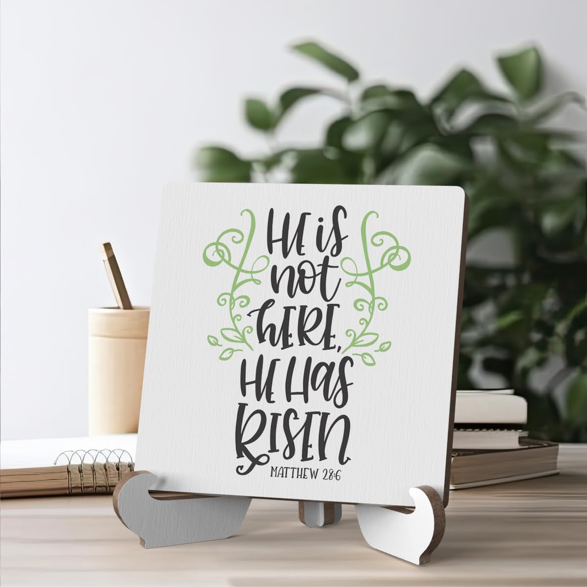 Bible Verse Table Desk Decor Inspirational Rustic Christian Wood Sign Plaque with Wooden Stand, Motivational Religious Positive Vintage Decor for Tabletop Desktop Shelf Shelves Countertop Classroom