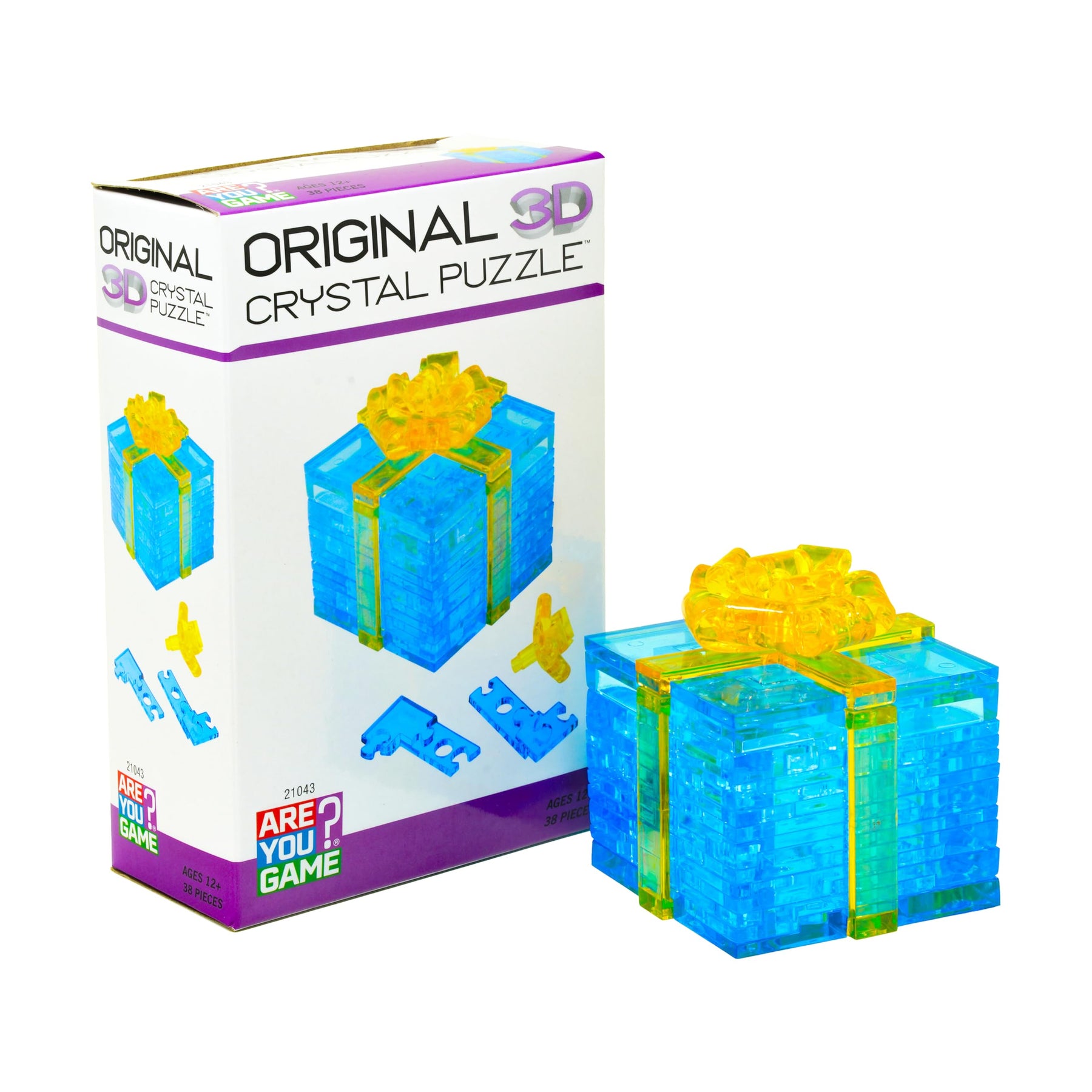 3D Crystal Puzzle - Gift Box (Blue with Yellow Ribbon): 38 Pcs