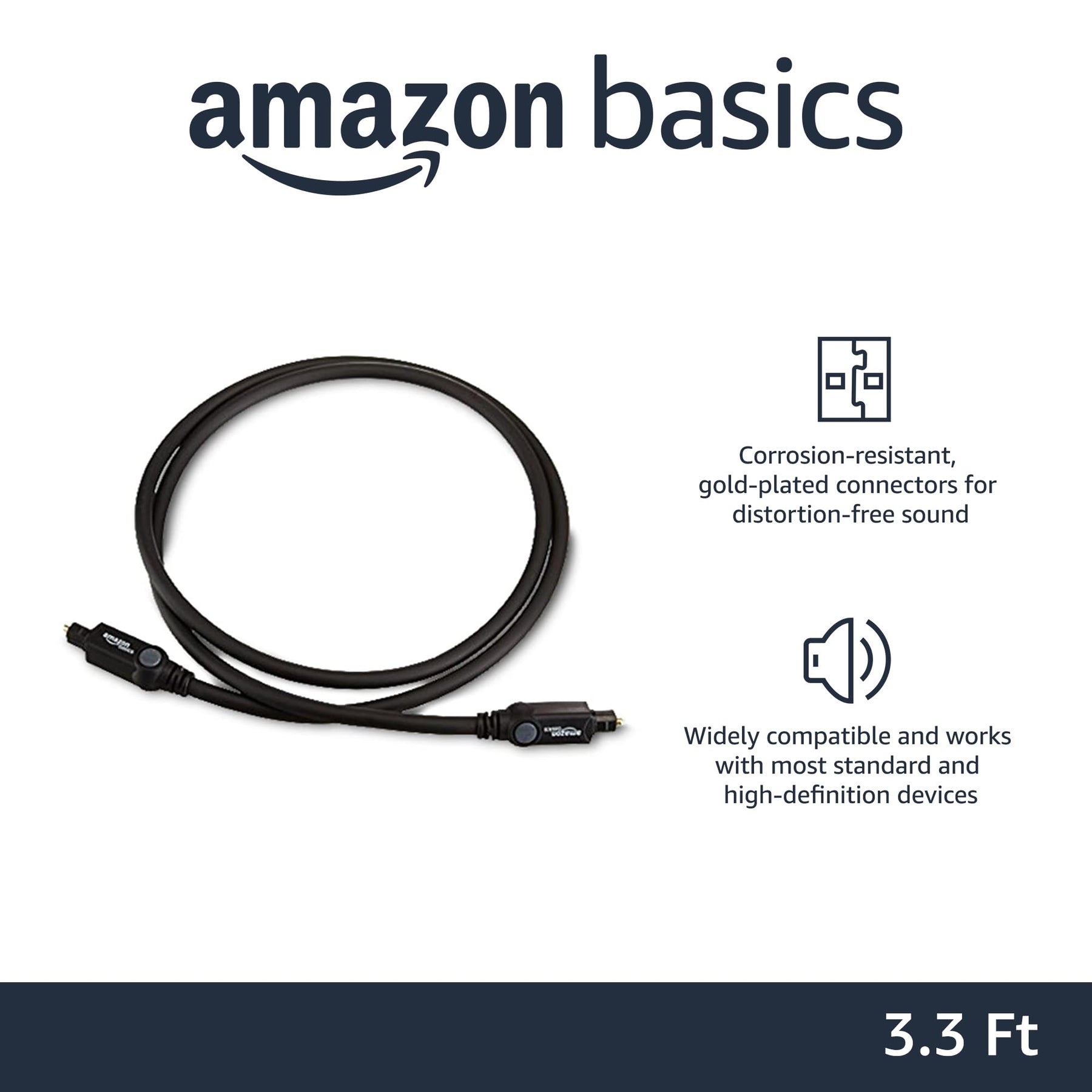 Amazon Basics Toslink Digital Optical Audio Cable, Multi-Channel, for Audio System, Sound Bar, Home Theatre, Gold-Plated Connectors, 3.3 Feet, Black