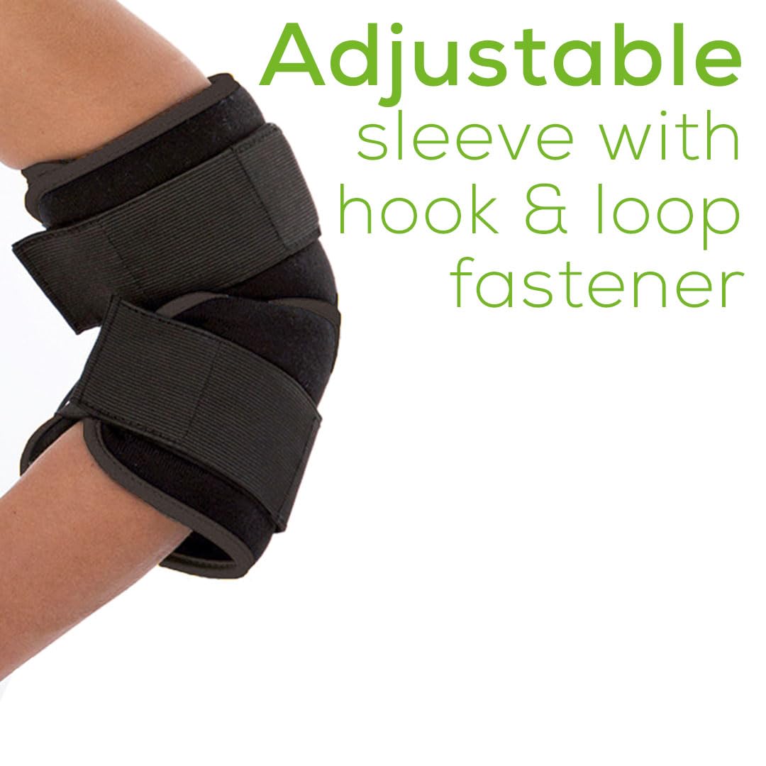 ELBOW AND KNEE: Universal band for the knee or elbow fits sizes 9.8 - 27.8in - aids in drug-free pain relief from tennis elbow, runners knee, tendonitis, arthritis, or sore muscles and joint pain ADJUSTABLE: Find the stimulation intensity best for you with 20 levels and 4 programs, EM29 will default to program "A", but you are in control - change the level at anytime to relieve pain REUSABLE ELECTRODES: No gel needed, and no need to purchase replacement pads, simply wet the electrodes in the sleeve wrap before use, great tool to use at home and for athletes to aid recovery EASY TO USE: Features a simple user display, auto-shut off, lock function, and a built in treatment timer for this compact estim system, battery powered, AAA batteries included TENS TECHNOLOGY: This transcutaneous electrical nerve stimulators (TENS) unit send an electric current direct to the spot of pain, this blocks the pain signal to the brain, providing pain relief PLEASE NOTE: This product is not recommended for use on any part of the body that has a metal implant, i.e. knee replacements which contain metal components retail $ 49.00