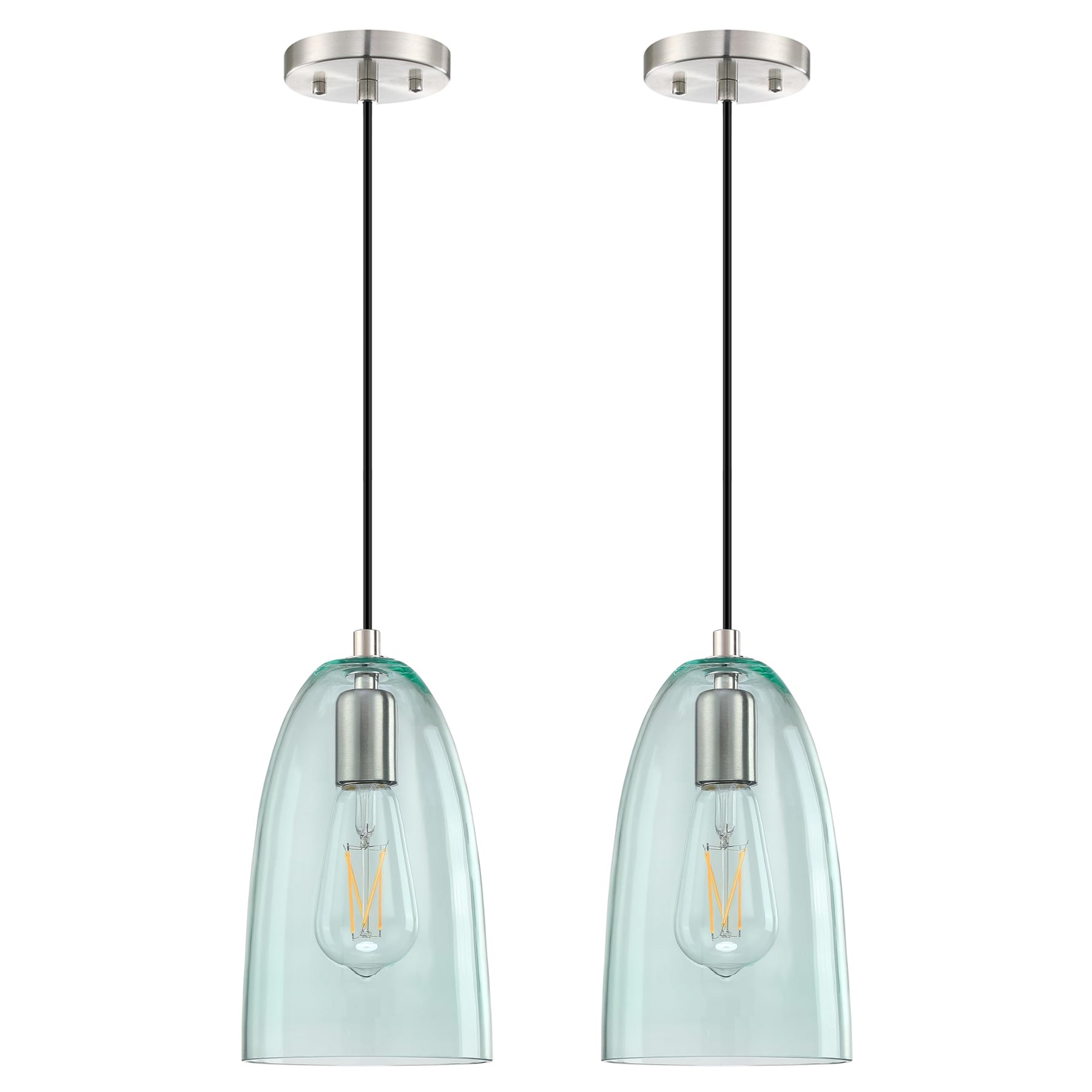 2 Pack 1 Light Indoor Hanging Kitchen Island Pendant Lights 5.3" Clear Green Glass Pendant Light Fixture,Brushed Nickel Finish Modern Farmhouse Dinning Over Sink