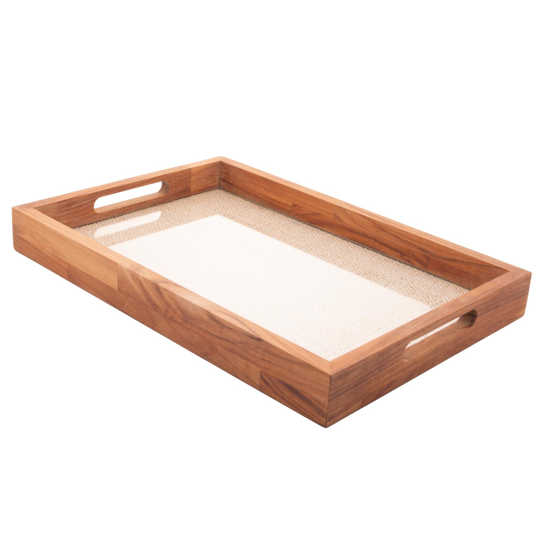 WOODART - Wood and Sisal Rope Decorative Tray - Hosting Adornment, Decorative Dish - Decoration Accessory, Rectangle Brown Wooden Ottoman Tray - Serving Platter, Candle Display - Teak 18x12”
